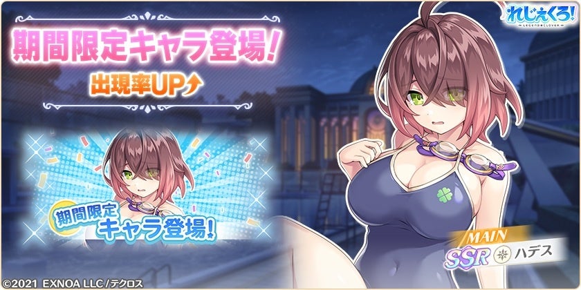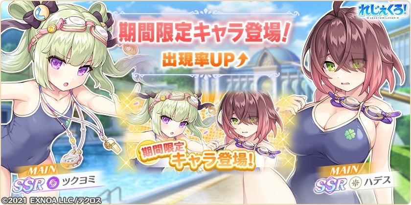 合同会社EXNOA(本社:東京都港区、CEO:村中 悠介、URL:https://games.dmm.com/)が運営するDMM GAMESにおいて、真の英雄となる王道ファンタジー『れじぇくろ!~レジェンド・クローバー~』(https://www.legend-clover.net/)にて、7月15日に学園水着衣装の「ツクヨミ」と「ハデス」が新たに登場!さらに彼女たちが活躍するイベント「夏だ!プールだ!補習授業だ!?」が開催!