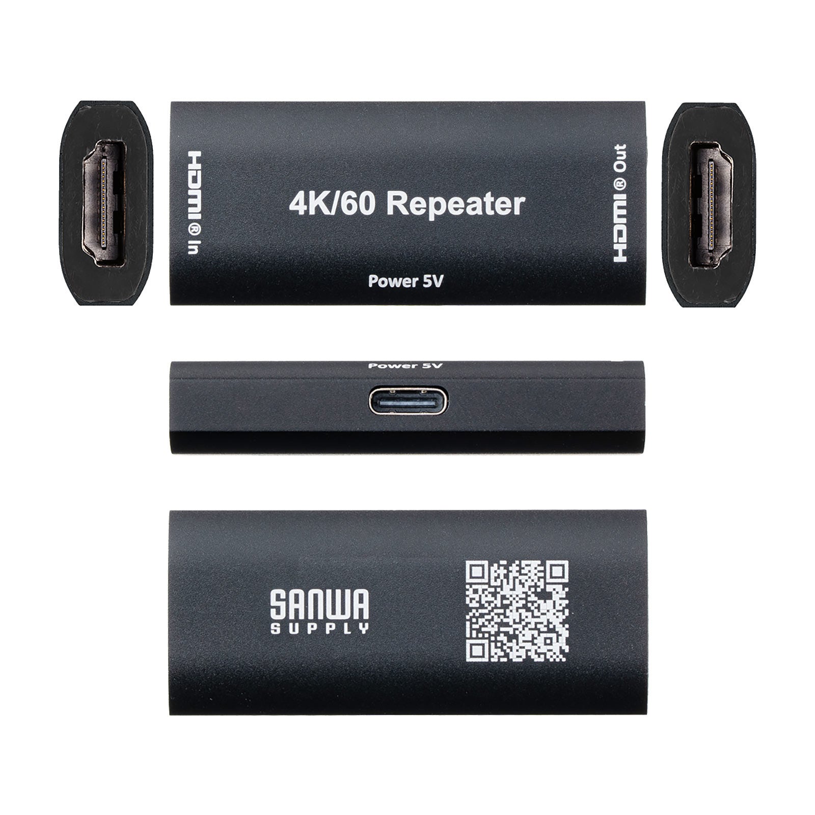 HDMI中継アダプタ 延長コネクタ 4K/60Hz リピーター USB-C 外部給電対応 18Gbps ハイスピード HDR ARC対応 メス-メス