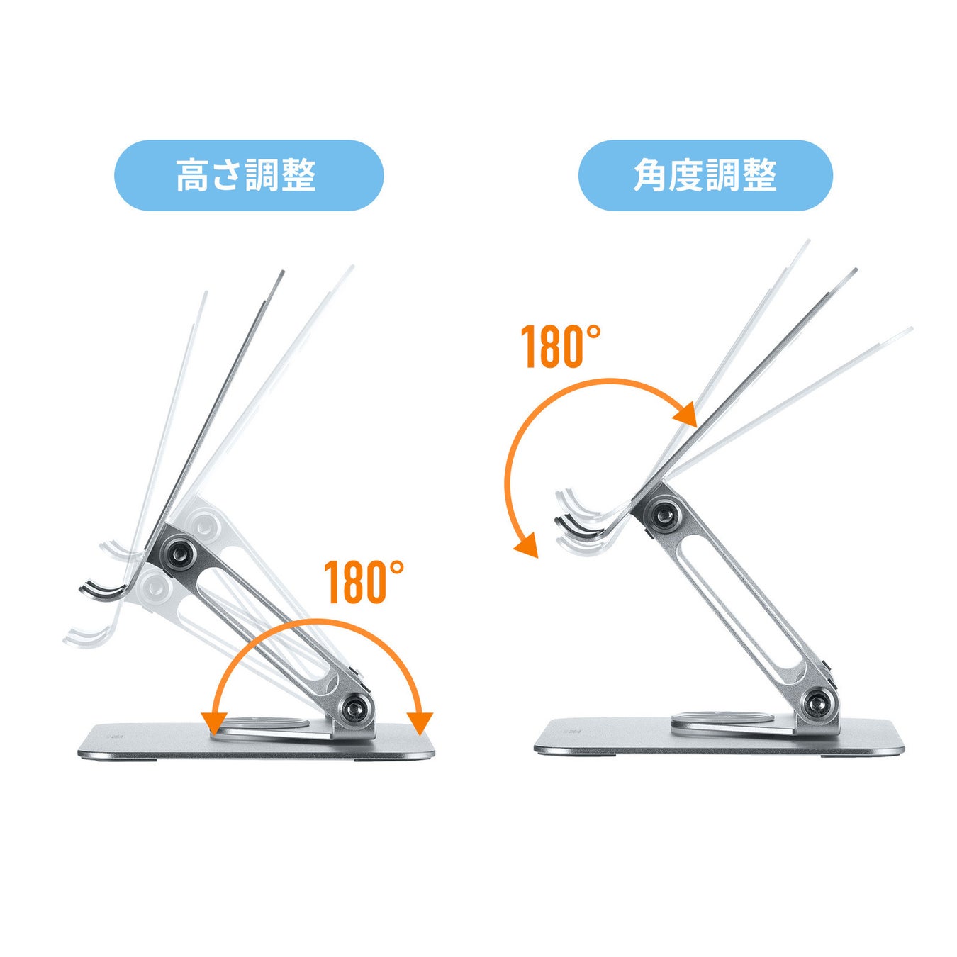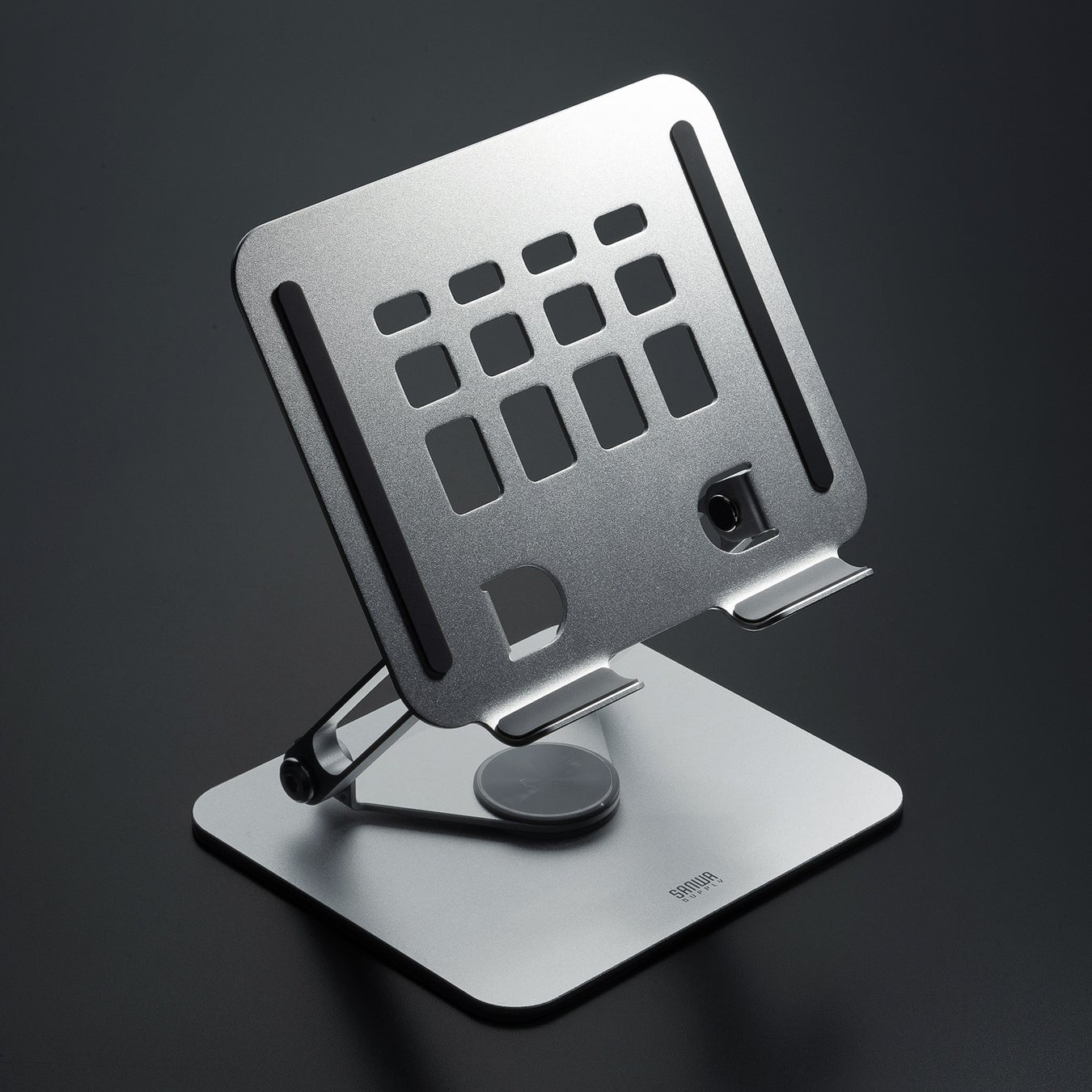 2ヒンジで角度調整も自由自在、台座が360°回転するタブレットスタンドを発売