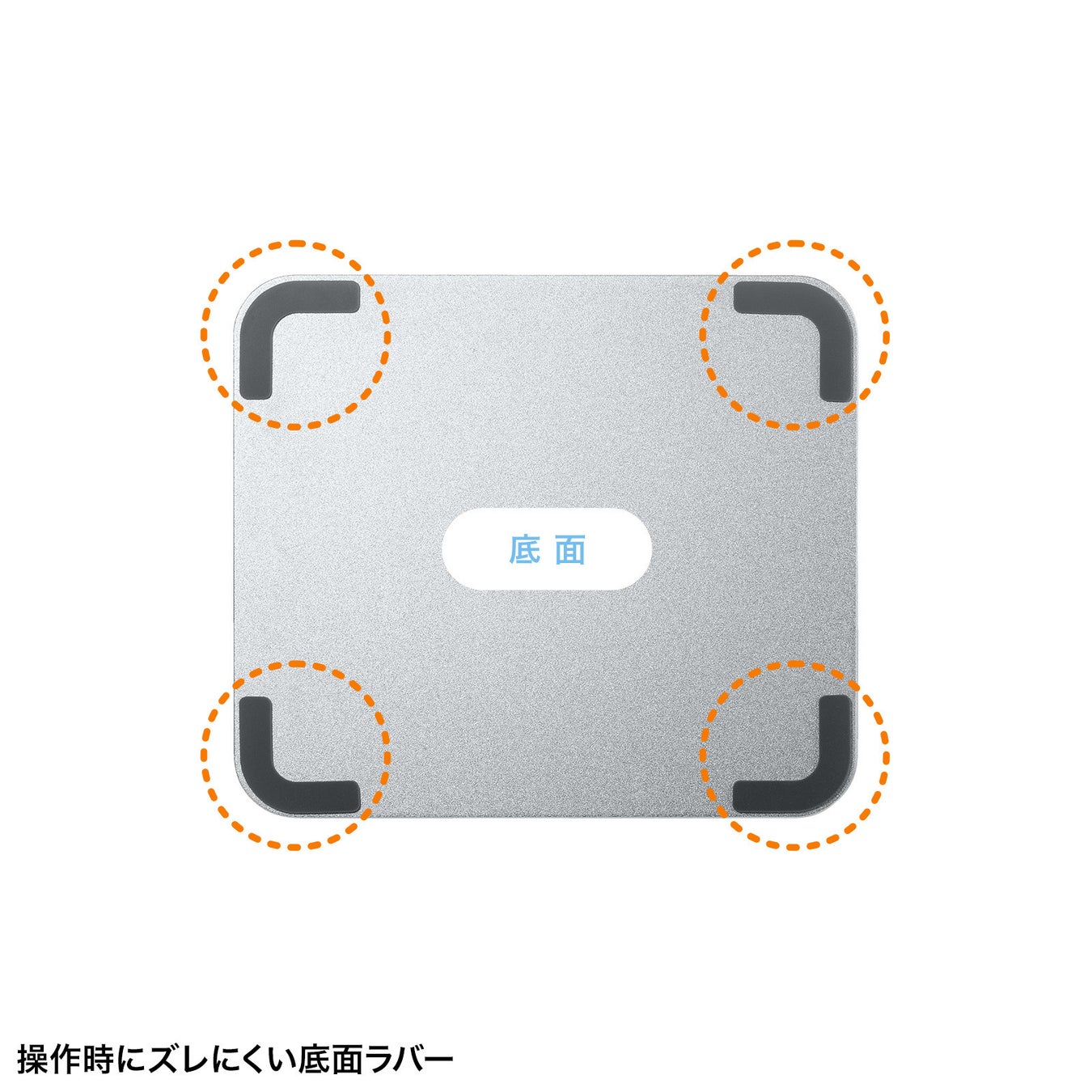 タブレットが触れる場所には、擦りキズから保護するゴムパッドと、操作時にズレにくい底面ラバーが付いています。