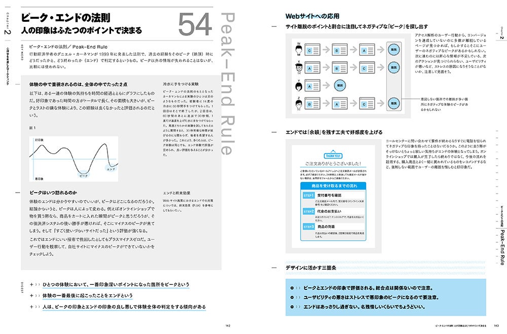 体感時間/視線解析/クレショフ効果/アフォーダンス理論/マジカルナンバー/段階的開示/ゲシュタルトの法則/ストループ効果/オンラインでの読解/色彩心理/配色のルール/プロトタイプ理論/フィッツの法則/ステアリングの法則/動画の認知心理/メンタルモデル/可読性尺度/タイポグリセミア/ジャムの法則/アンカリング効果/返報性の原理/カリギュラ効果/エスカレータ効果/バイヤーズリモース/アンダードッグ効果/ピグマリオン効果/宣言効果/認知的不協和/準拠集団/リフレーミング/初頭効果と終末効果/両面提示と片面提示/ザイアンスの効果/テンション・リダクション/コントラスト効果/ツァイガルニック効果/カクテルパーティ効果/バンドワゴン効果/スノッブ効果/ヴェブレン効果/バーナム効果/フォールスコンセンサス/スリーパー効果/プラシーボ効果/ベビーフェイス効果/ディドロ効果/暗黙の強化/シャルパンティエ効果/ハロー効果/コンコルド効果/エピソード記憶/メラビアンの法則/稀少性の原理/ピークエンドの法則/プライミング効果/ブーメラン効果/想起集合/観念連合/おとり効果 他