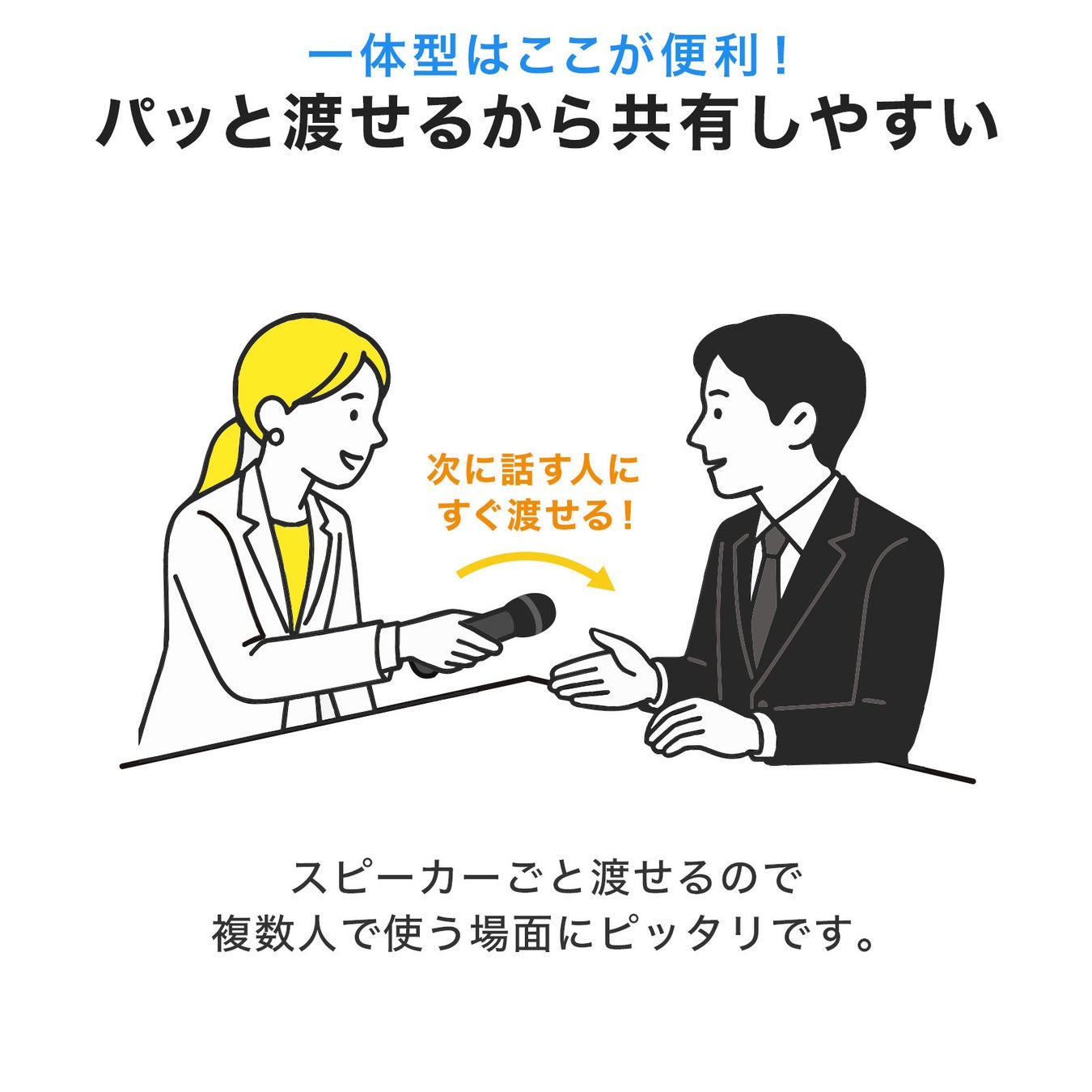 Bluetooth接続で配線不要なので、朝礼や打ち合わせ、会議、授業、屋外イベントなど幅広く使用できます。