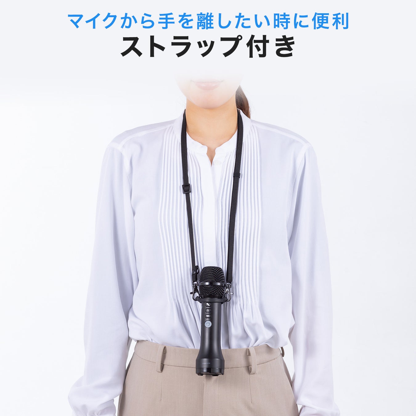 専用ストラップが付属しているので、マイクから手を離したい時に便利です。