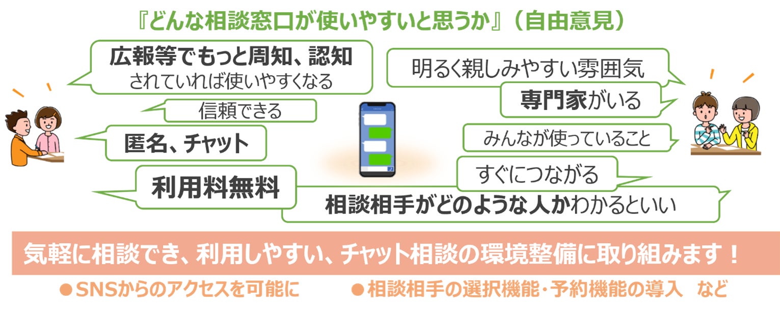 また、相談相手を選べたり、継続して同じ相談相手に話を聴いてもらいたいというニーズがあることも分かりました。
