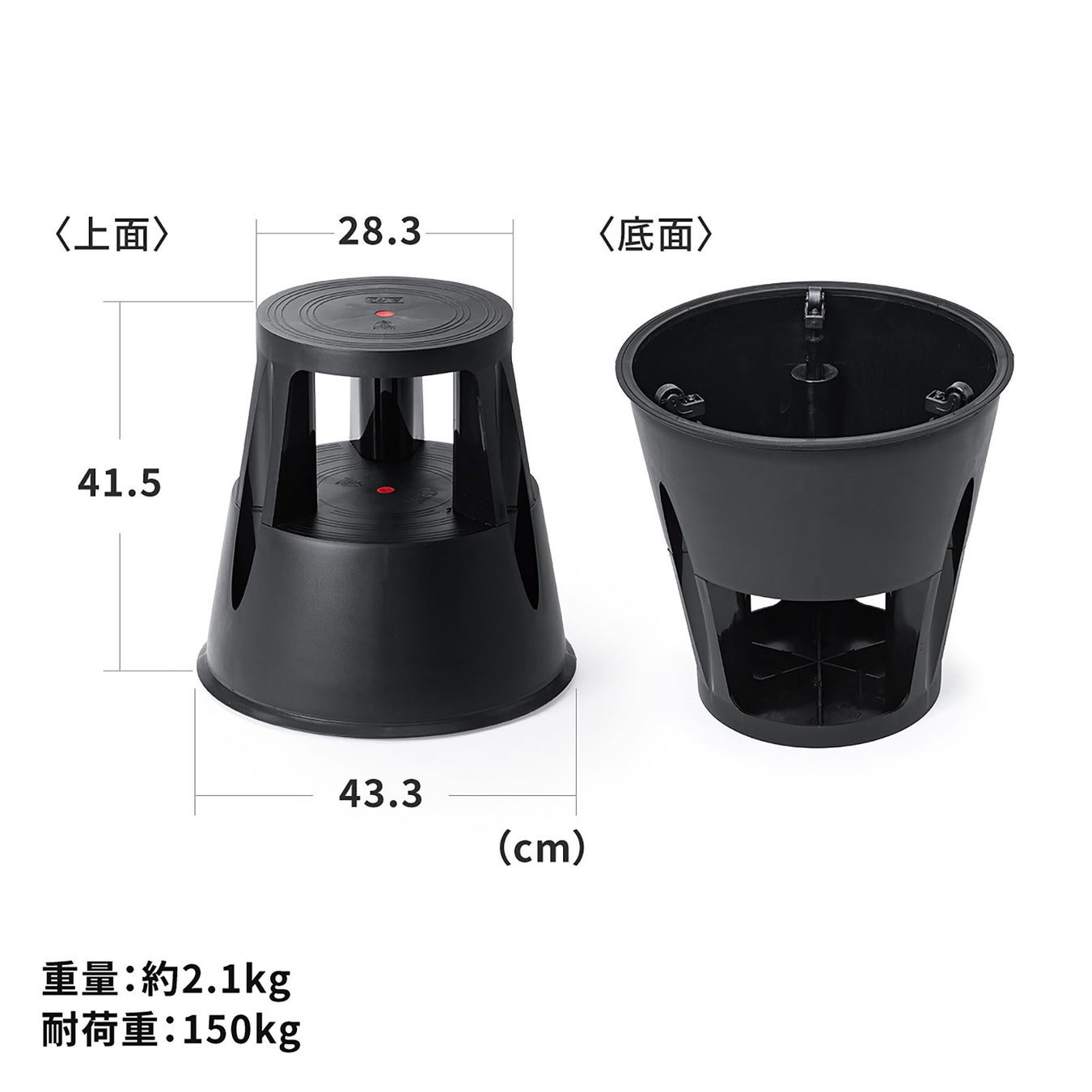 ステップスツール 踏み台 キャスター付き ストッパー機能付き 高さ41.5cm 2段タイプ スタッキング可能 耐荷重150kg 高耐久