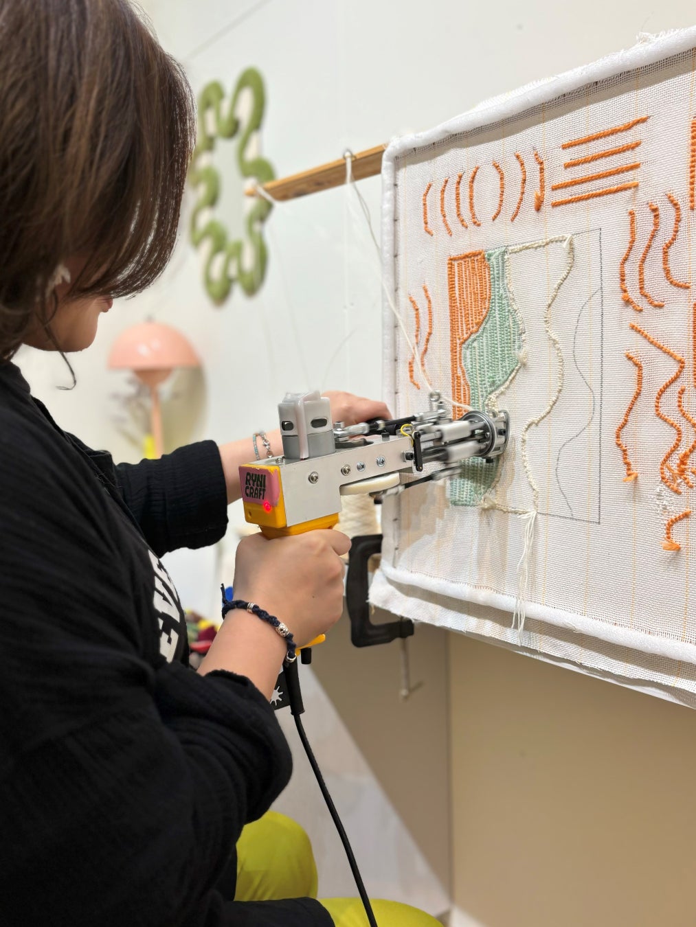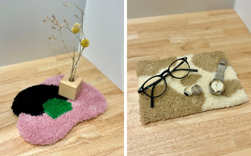 ※ タフティングとは…主にラグやカーペットを制作する技法で、専用のタフティングガンを使って布に毛糸を打ち込んでいきます。