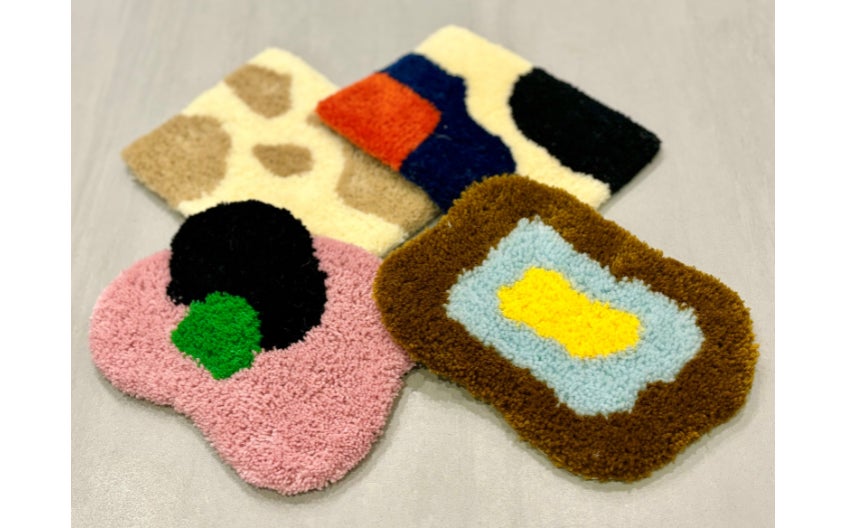 今回開催するタフティングワークショップでは、約50色の毛糸のなかからお好きな色を選び、自分だけのオリジナル作品を作ることができます。デザインも数種類からお選びいただけますので、ものづくりが好きなかた、タフティングをやってみたいかたはぜひ体験してオリジナルの小さなマルチマットを作ってみませんか?
