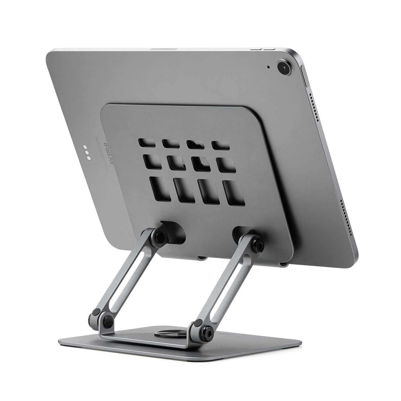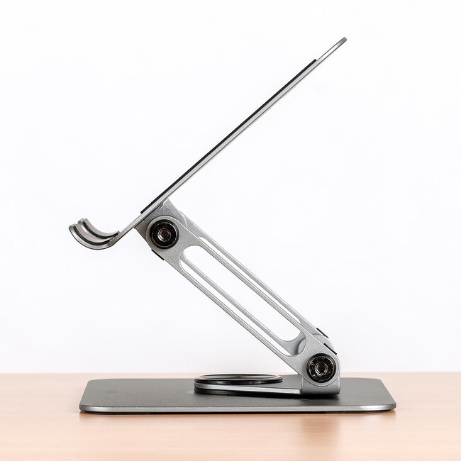 本製品は、 角度も高さも自由に調整できる2つのヒンジを搭載したアルミ製タブレットスタンドです。無段階で調整が可能なので、作業や視聴スタイルに合わせて最適なポジションを設定できます。