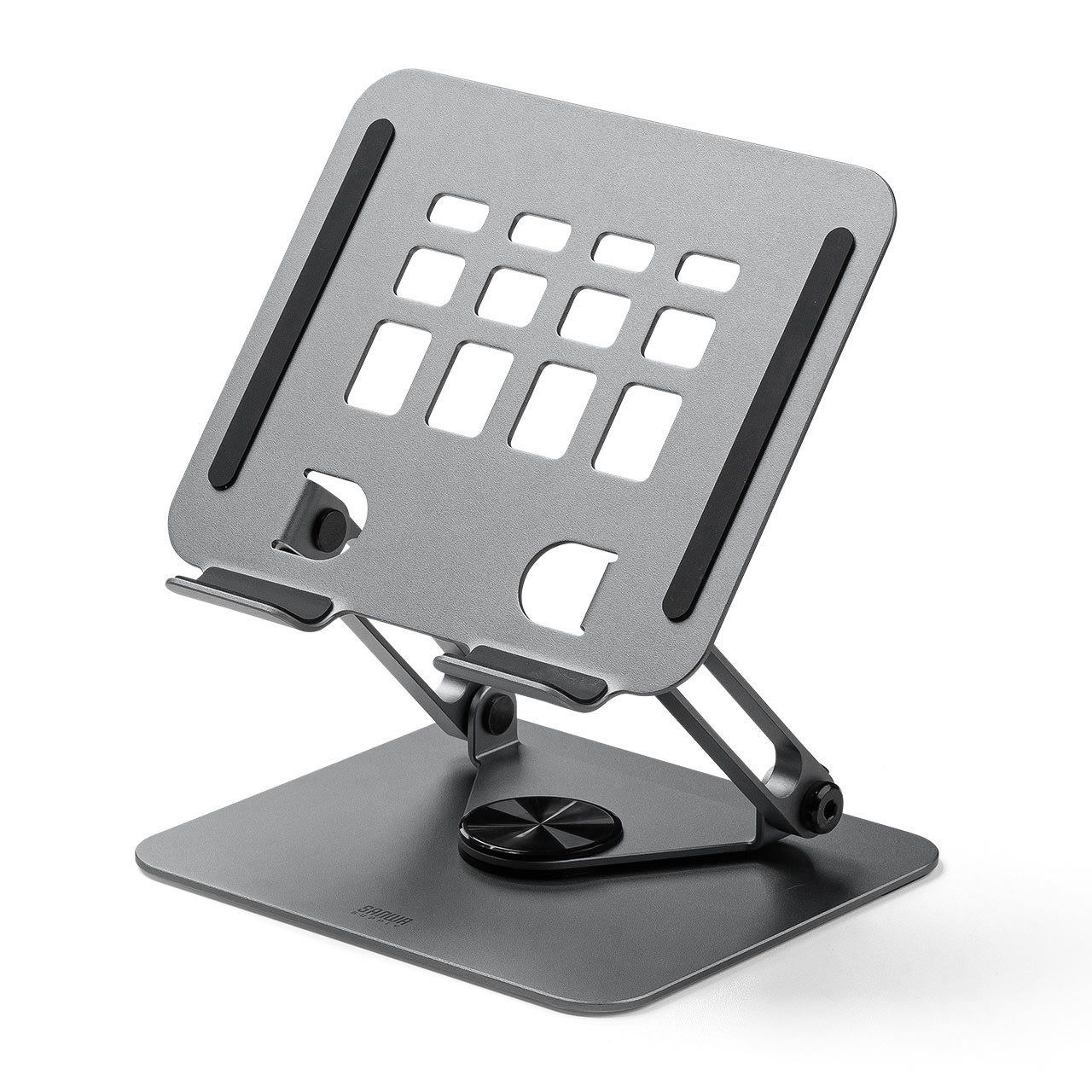 タブレットスタンド 回転 折りたたみ アルミ製 無段階 角度調整 2関節 スマートフォンスタンド Switch グレー