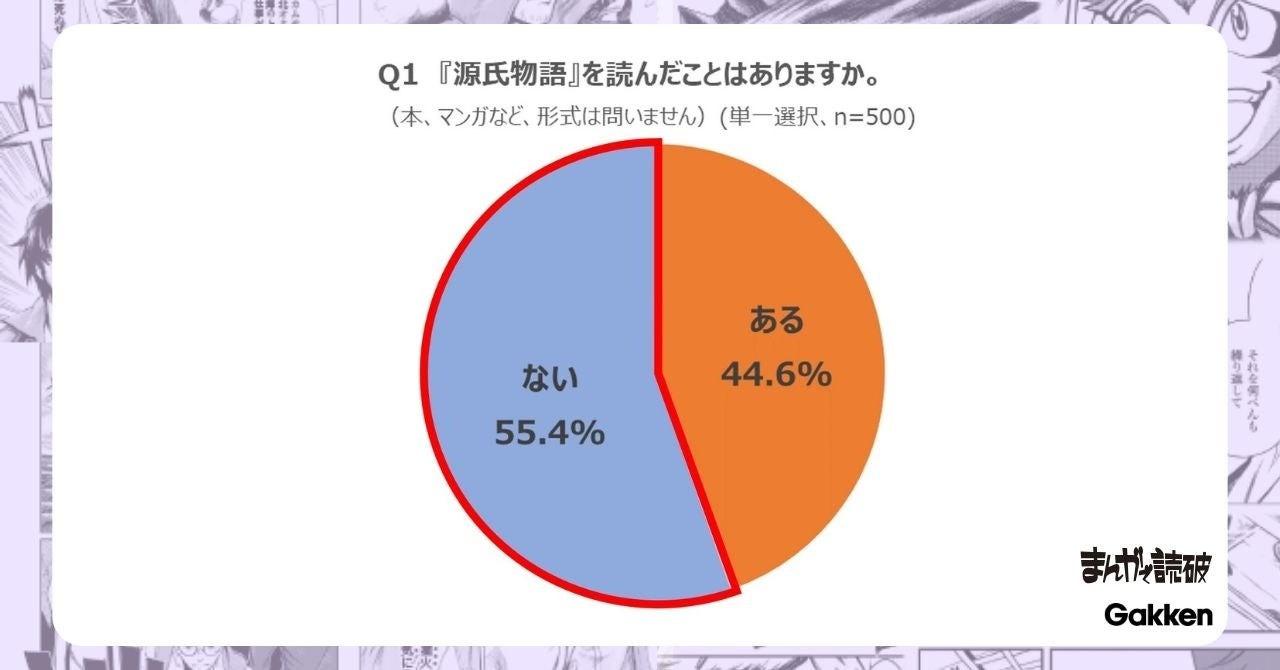 【Q1 『源氏物語』を読んだことはありますか。(本、マンガなど、形式は問いません)(単一選択、n=500)】と聞いたところ、「ある」44.6%、「ない」55.4%となりました。