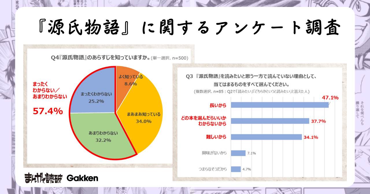 Gakkenでは、古今東西の名著をコミカライズした「まんがで読破」シリーズや、まんが日本の歴史など、古典に関わるまんがや解説書を多く発行しています。あらためて『源氏物語』がどのように受け取られているのか、主な読者層である女性を対象にアンケート調査を実施しました。