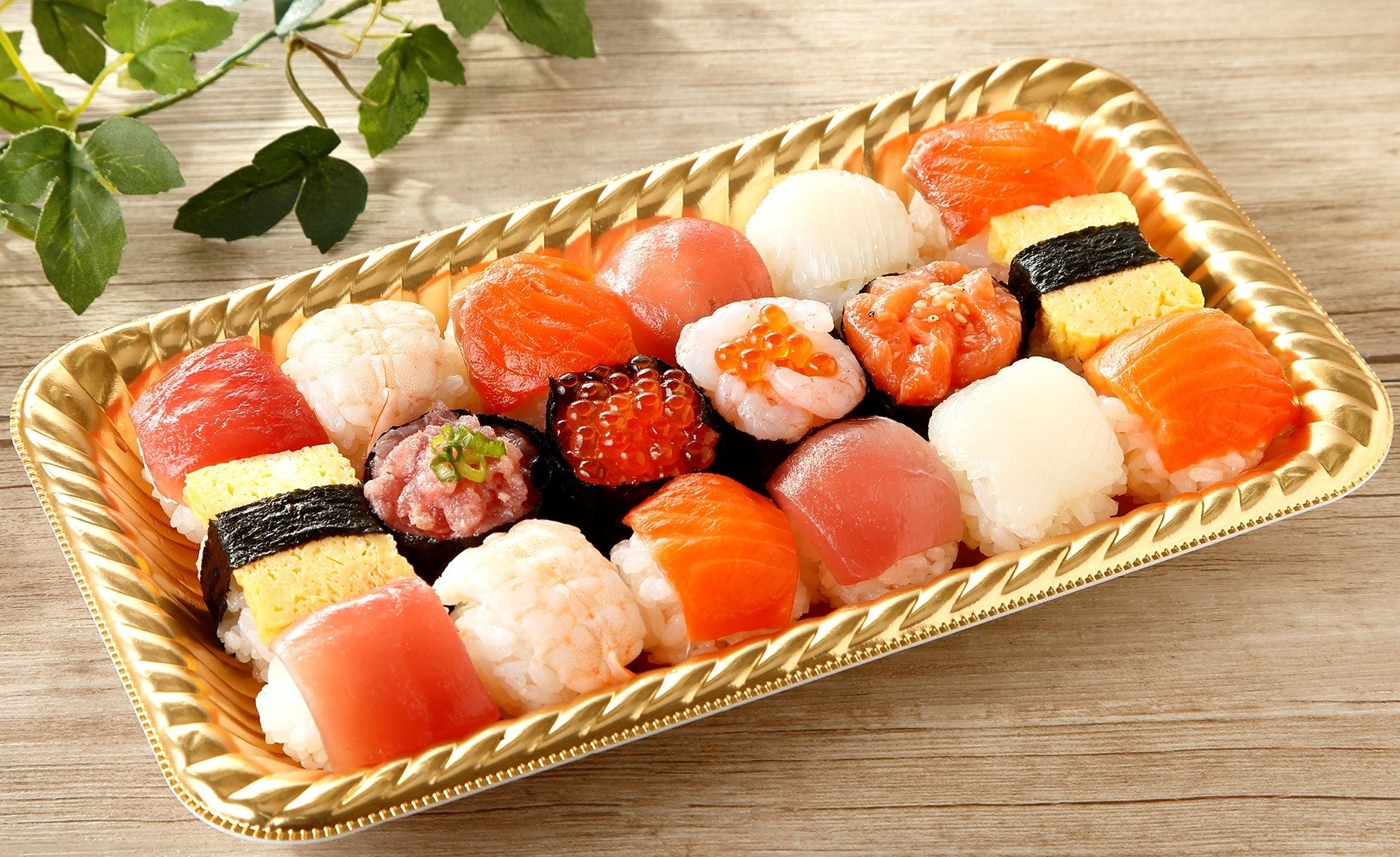 華やかな彩りがひな祭りの食卓を引き立てます。まぐろ、サーモン、甘えびなど人気の海鮮ネタに自慢のオリジナル玉子焼きをトッピング。彩りよく盛り付けた海鮮ネタのちらし寿司です。