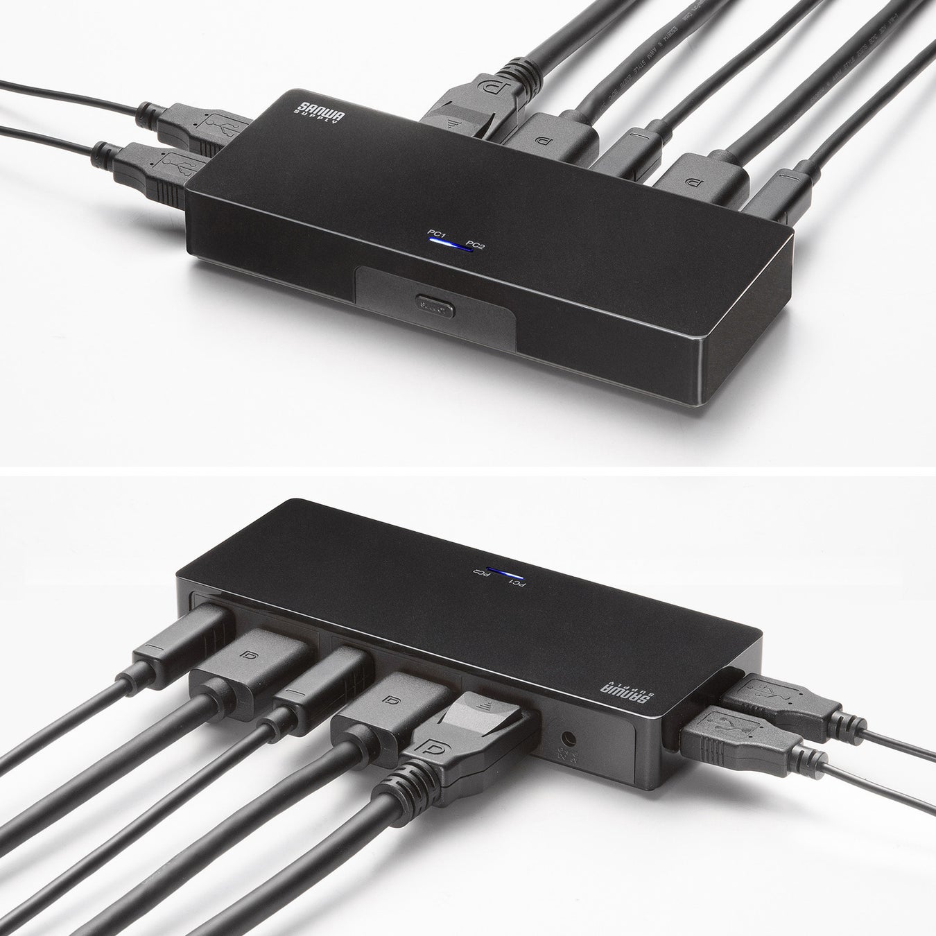 1組のDisplayPortディスプレイ・USBキーボード・USBマウスを、2台のパソコンで使用できます。
