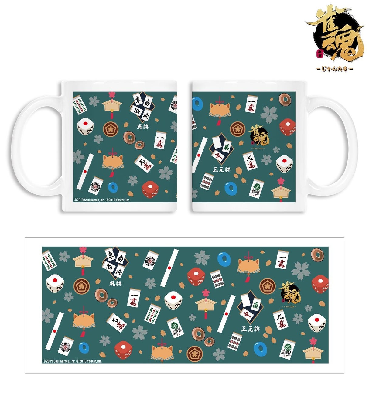 作中に登場するモチーフを散りばめた総柄のデザインをマグカップに仕上げました。