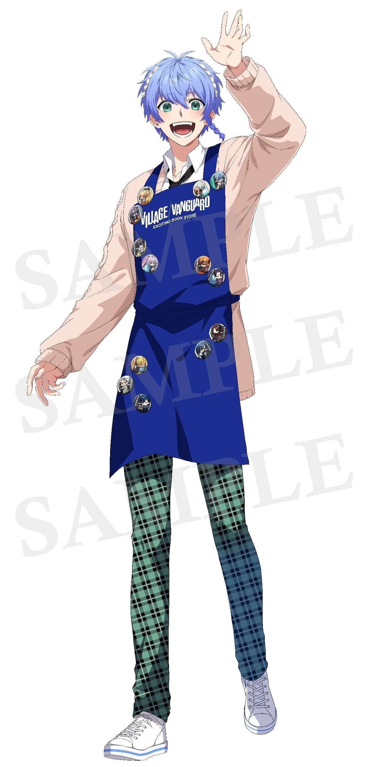 ヴィレヴァン店員エプロン着用の新規描き下ろしイラストの「照住万輝」の等身大パネル