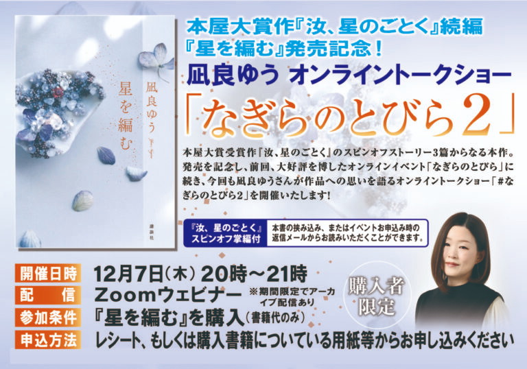 さらに、前回大好評だった購入者対象のオンライントークイベントの“続編”「なぎらのとびら2」も開催! 本作を書く経緯となった舞台裏や、創作秘話を凪良さんご本人から聞くことができます。