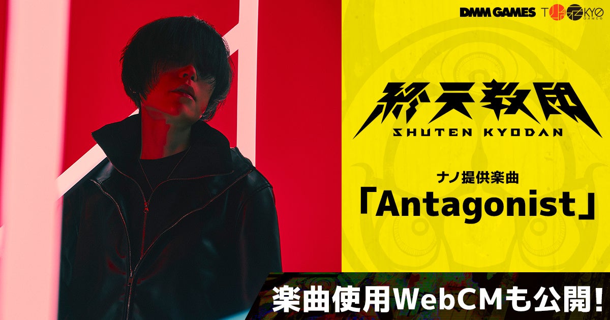 DMM GAMESを運営する合同会社EXNOA(本社:東京都港区、CEO:村中 悠介、URL:https://games.dmm.com/)は、トゥーキョーゲームス株式会社(本社:埼玉県所沢市、CEO:小高和剛、URL:https://tookyogames.jp/)とタッグを組んだ最新作『終天教団』にて、ナノさんが本作のプロモーションタイアップアーティストへ就任したことをお知らせいたします。また、提供いただいた楽曲「Antagonist」を使用したWebCMを公開いたしました。