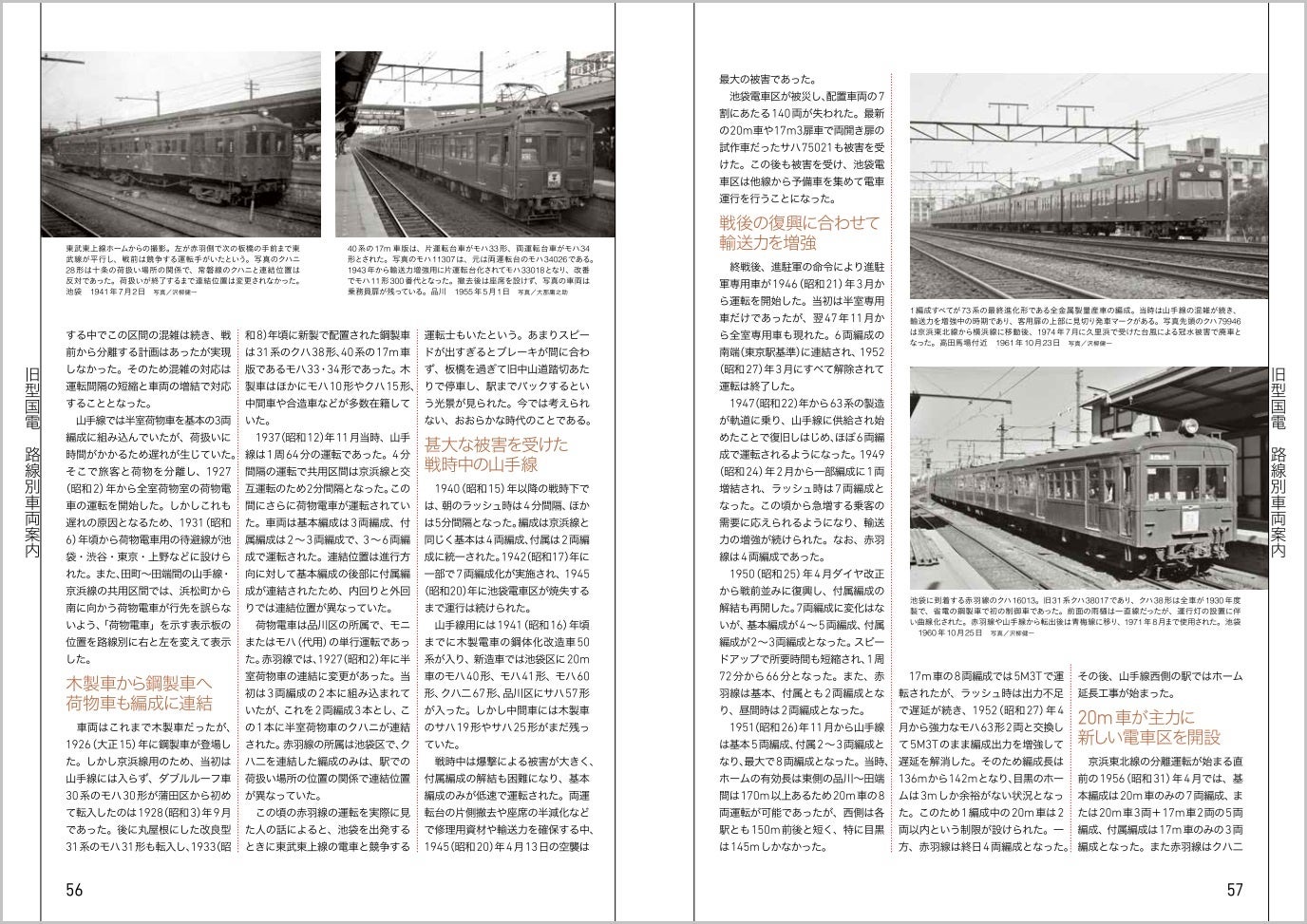 写真は、旧型国電に関する研究を多数発表されていた沢柳健一さんと大那庸之助さんの遺された写真を中心に、1950~60年代の写真もふんだんに掲載しています