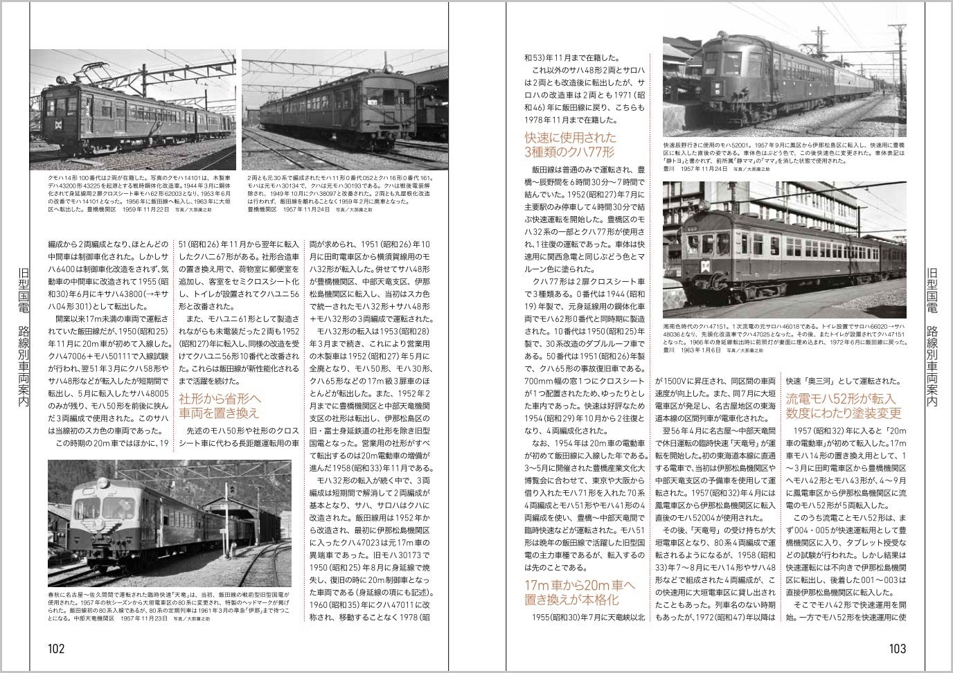 全国からさまざまな旧型国電が転入し、1970~80年代には「旧型国電王国」などと呼ばれて多くの愛好家が駆けつけた飯田線。晩年はもちろん、1950年代からの写真を掲載しています。