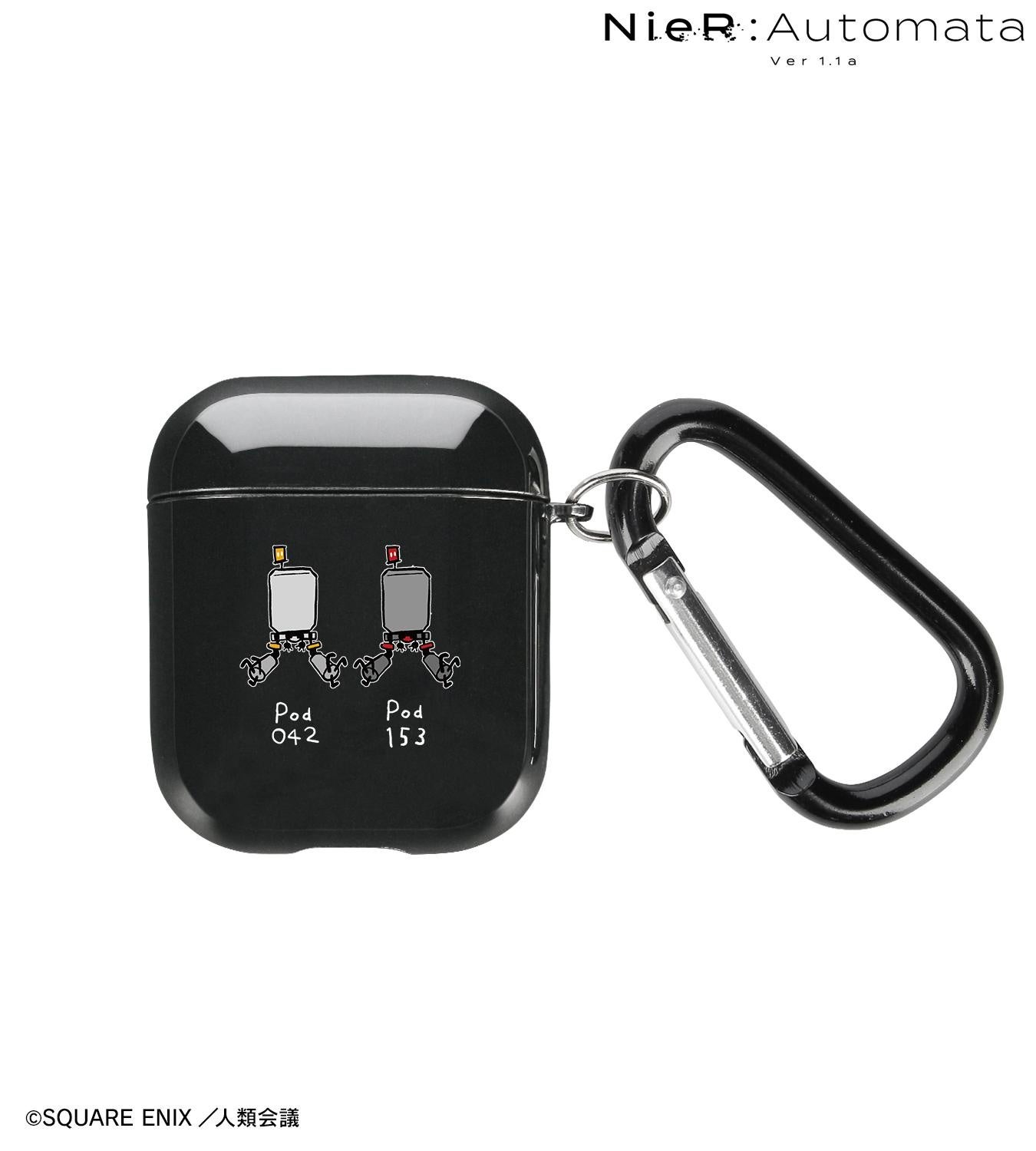 ヨルハ部隊のエンブレムを使った、部隊支給品のようなイメージのデザインと、ポッド042とポッド153のデフォルメイラストを使用したデザインのAirPodsケースに仕上げました。