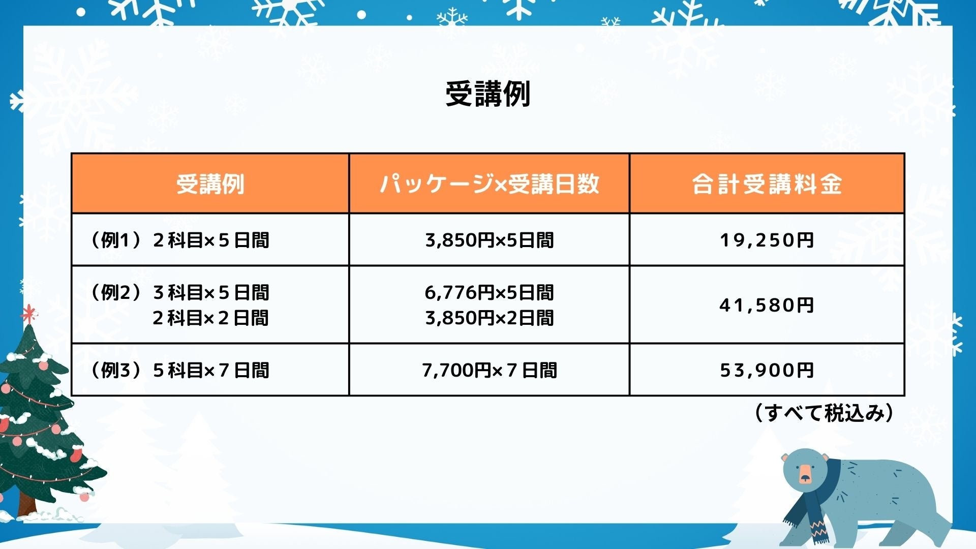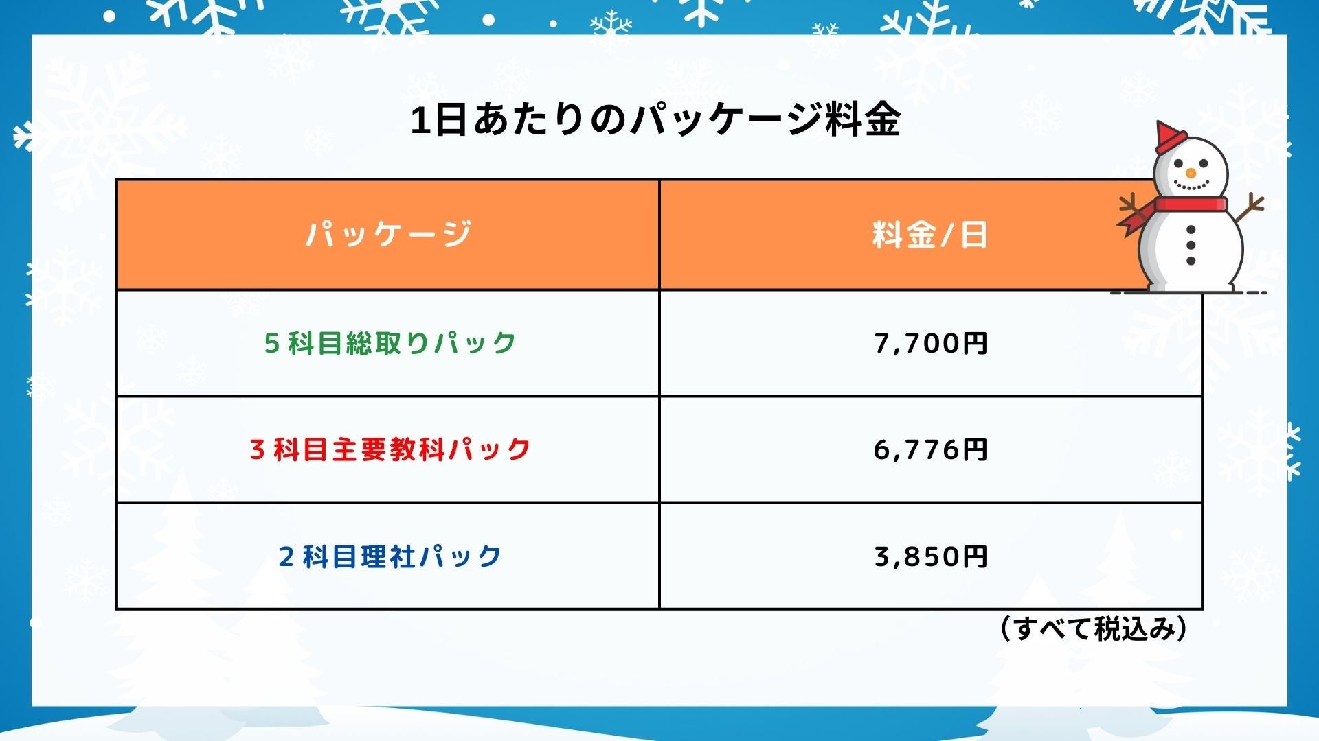 他社冬期講習と比べても安価で受講いただけます!