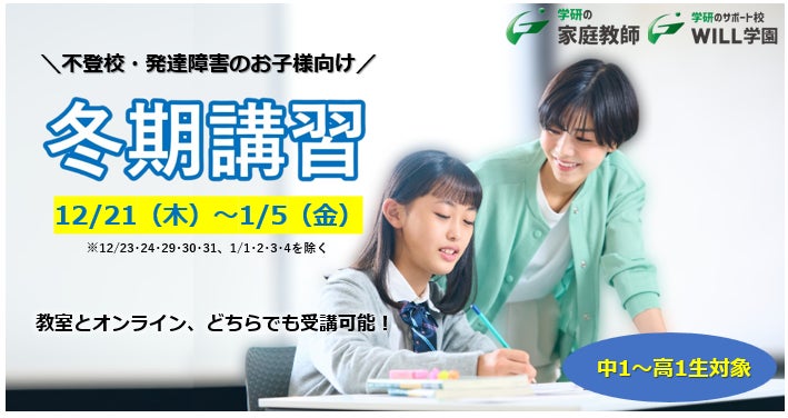 【受講生募集中!!】中学1年生〜高校1年生対象!基礎レベルから振り返る「不登校・発達障害の生徒向け冬期特別講習会(対面、オンライン ハイブリッド型)」を12月21日~1月5日に実施します!