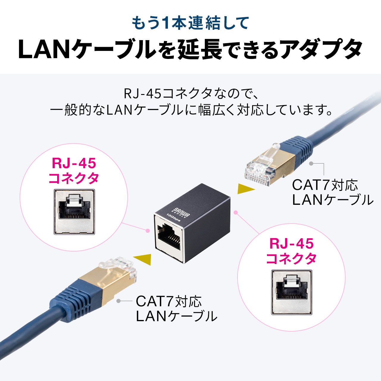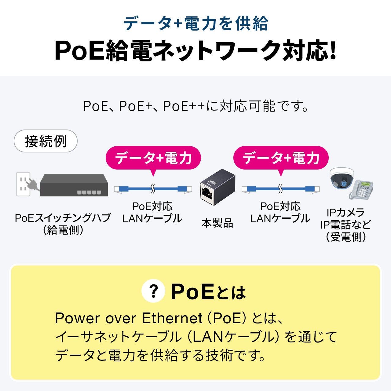 LAN中継アダプタ RJ-45中継アダプタ CAT7対応 10Gbps PoE/PoE+/PoE++ UTP/STP