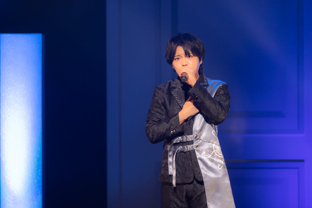 ライブパートのトップバッターを飾ったのは、如月薫の「Girl,it's you」。「恋する気持ち」をテーマにした歌詞はどこか切なげで、歌う土岐さんの表情もその内容を映したかのよう。薫らしい相手を思いやる優しい言葉が紡ぎながら、手にしたバラがまるで恋する相手のようにうやうやしく扱っていました。