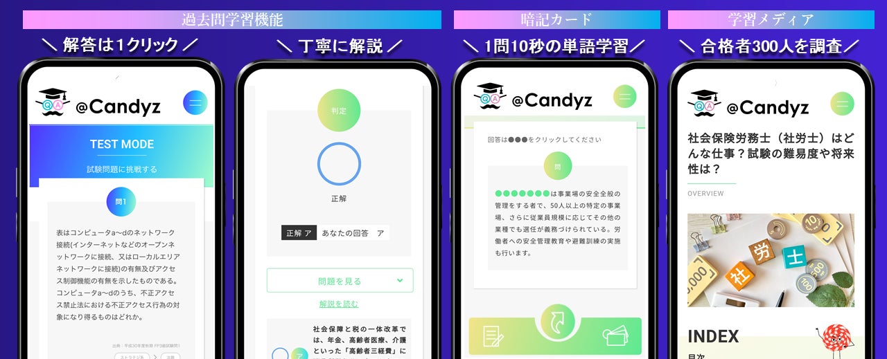 \無料で学び放題/ 国内最大級の資格学習プラットフォーム「過去問研究所 @Candyz」利用者数10万人を突破