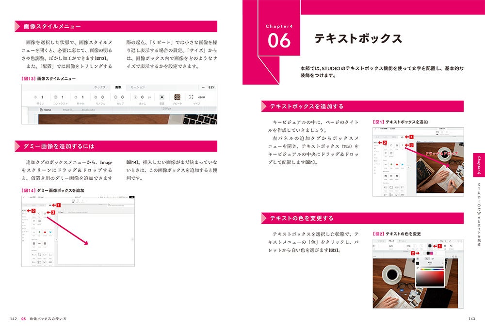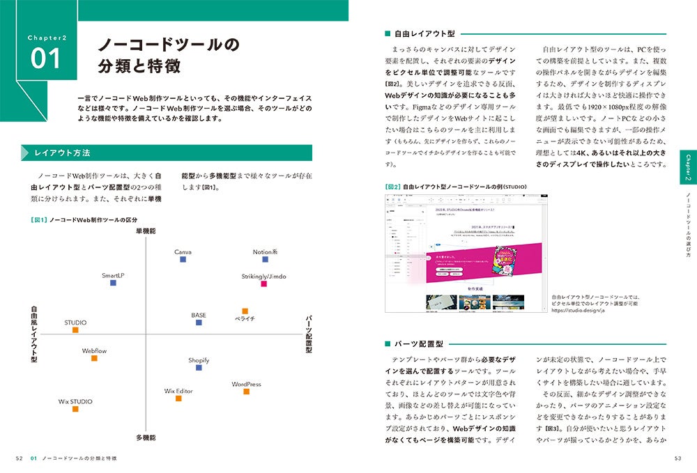 後半では、代表的なノーコードツールの一つSTUDIOを使って、イチからWebページを作る方法をていねいに解説しています。