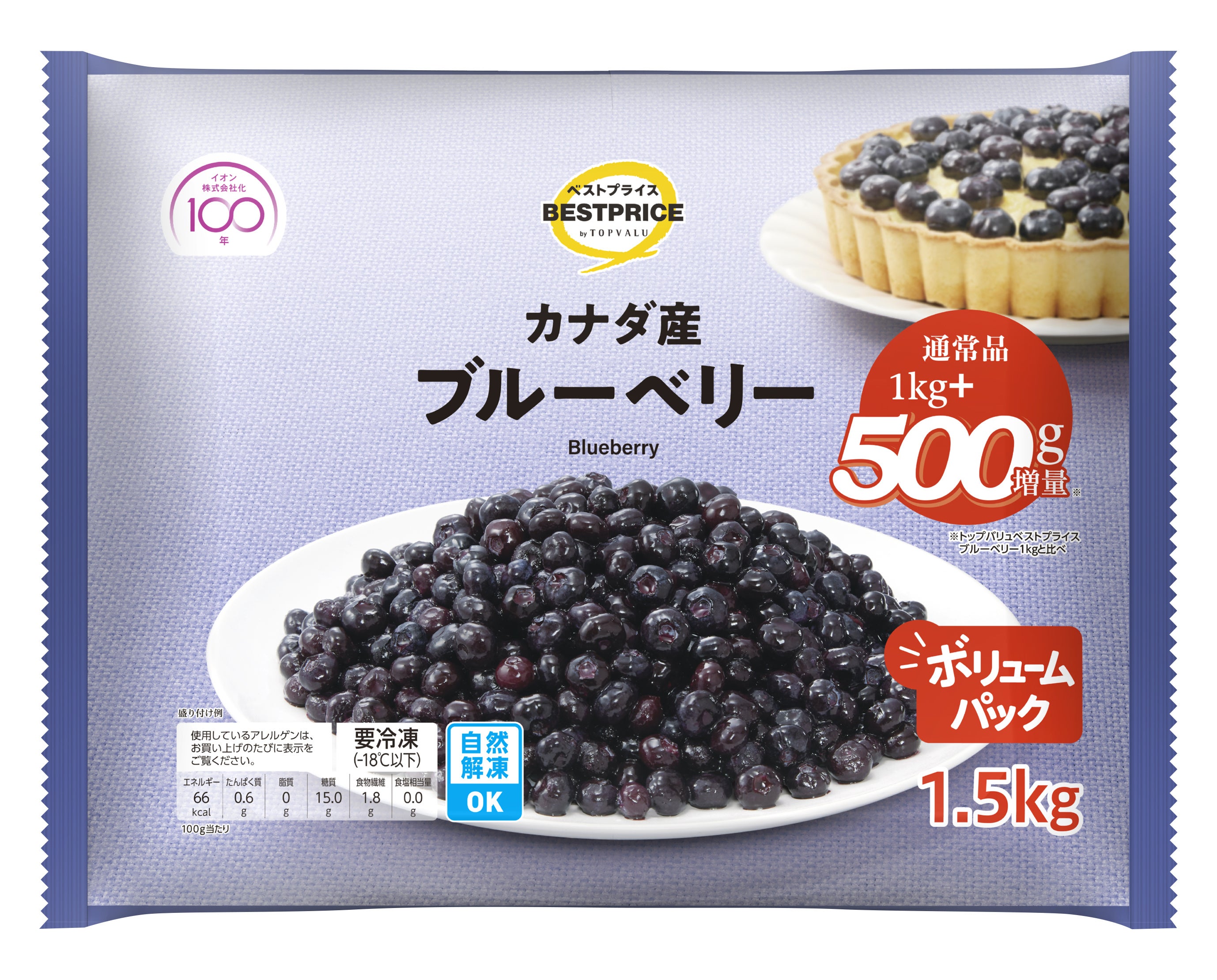 人気の冷凍ブルーベリー1kgのボリュームパックを価格は据え置きのまま500g増量し、1.5kgで販売します。