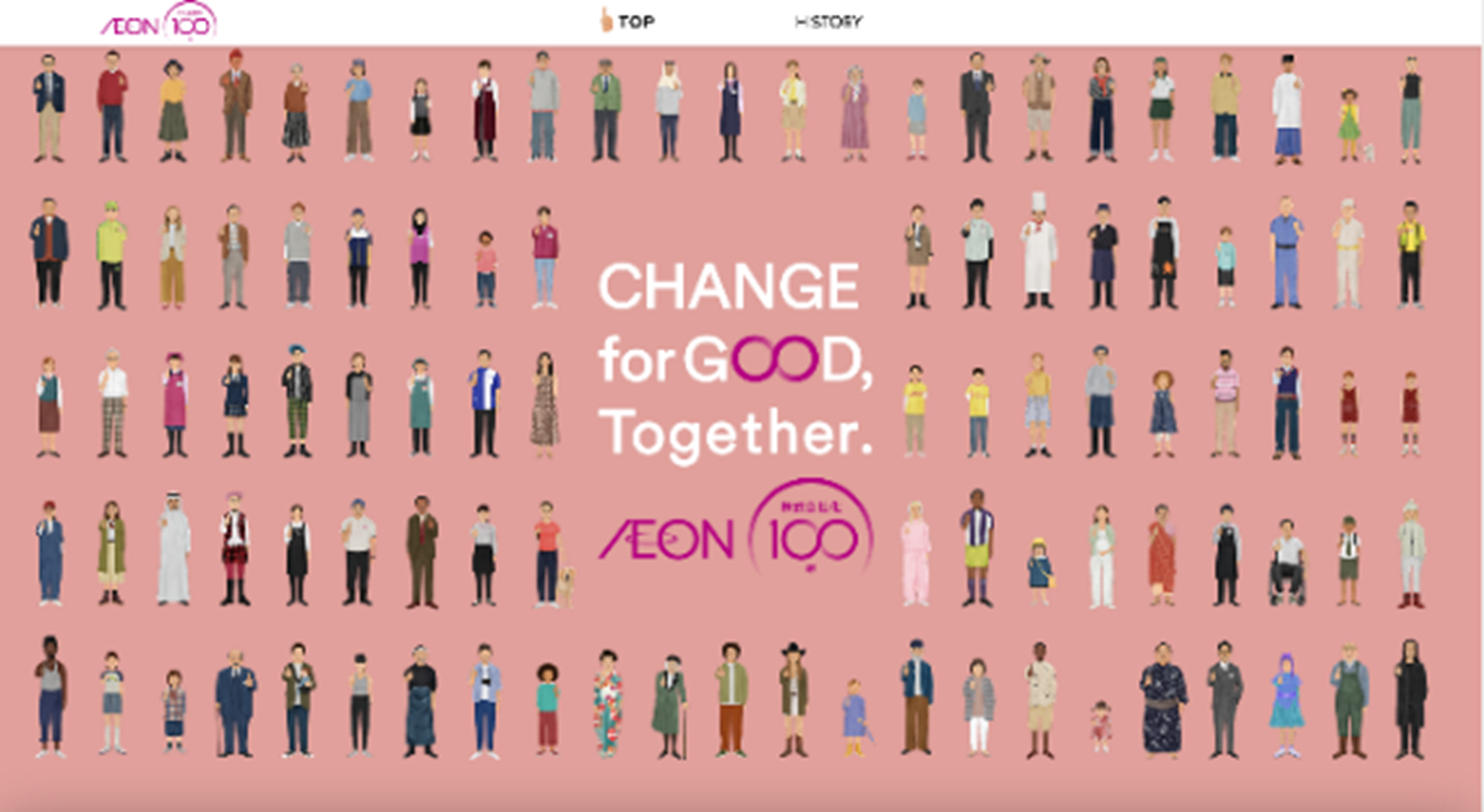 これからもイオンは、お客さまや株主・地域社会・従業員・お取引先さまなど、さまざまなステークホルダーの皆さまとともに、株式会社化100年を起点とした企画に取り組んでまいります。