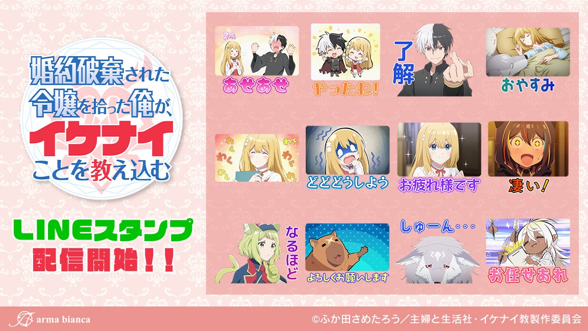 株式会社アルマビアンカはTVアニメ「婚約破棄された令嬢を拾った俺が、イケナイことを教え込む」のLINEスタンプを配信いたします。