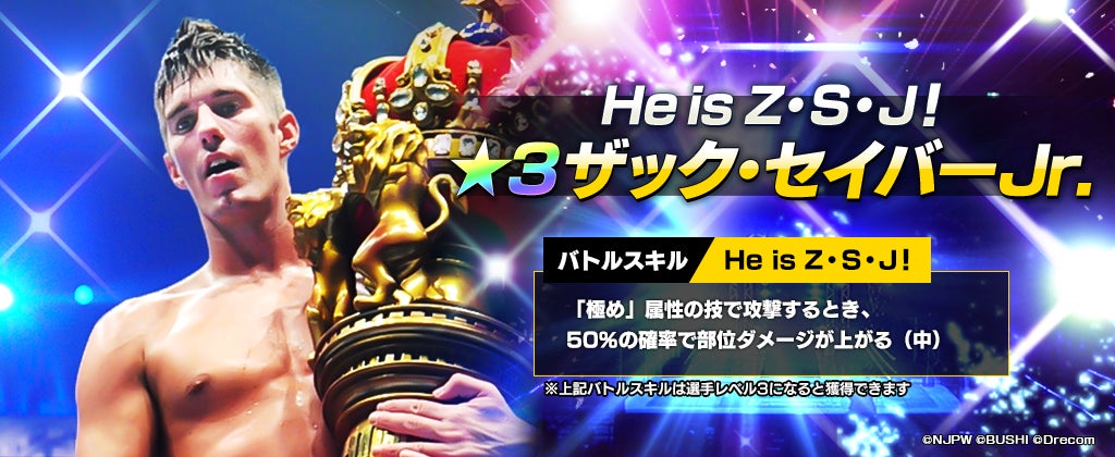 ブシモ『新日本プロレスSTRONG SPIRITS』フェス限定となるザック・セイバーJr.選手の新★3選手とジェイ・ホワイト選手の新SSRパートナーを含んだ各フェス限定スカウトを開催!