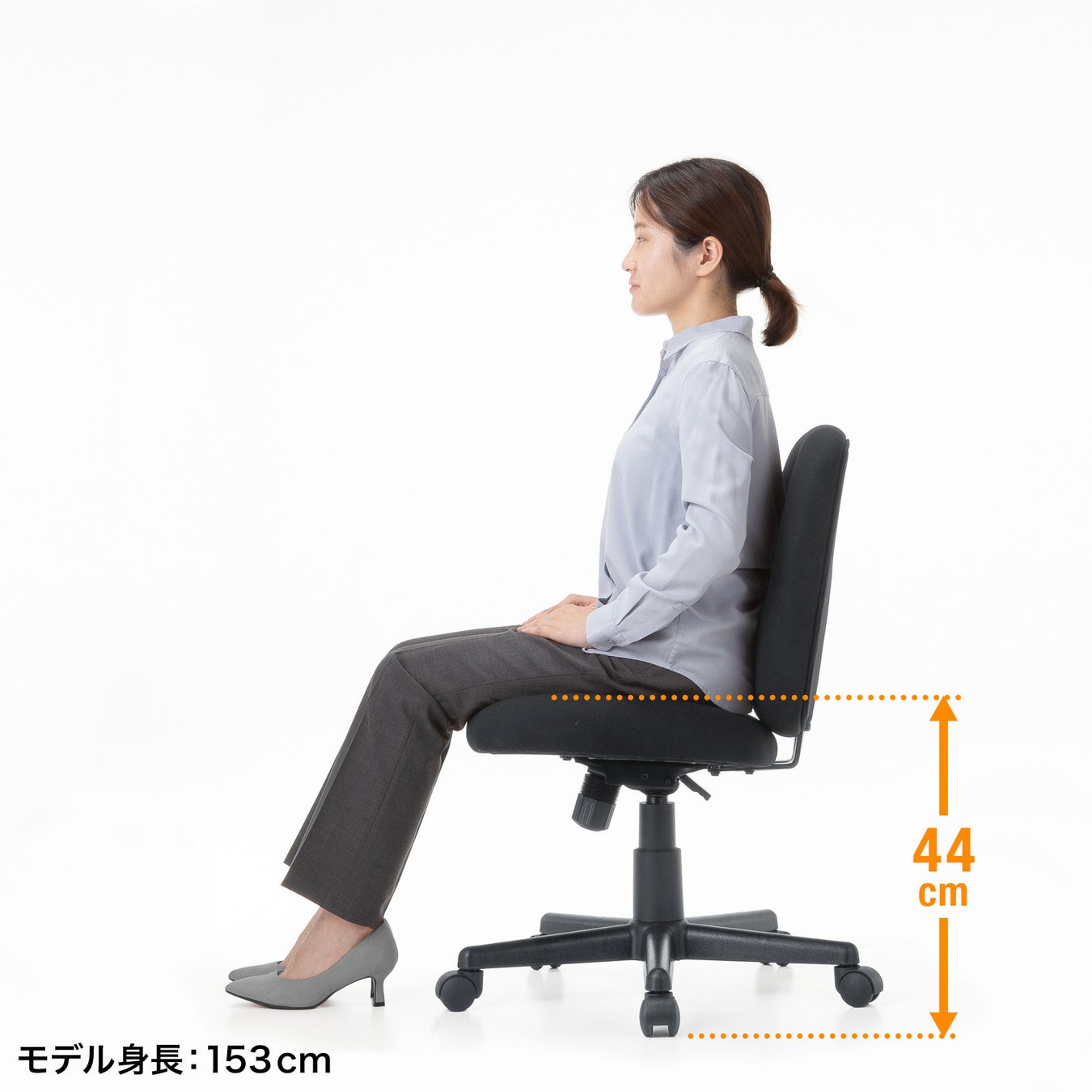 机の高さや体型に合わせて、座面の高さを上下に昇降できます。