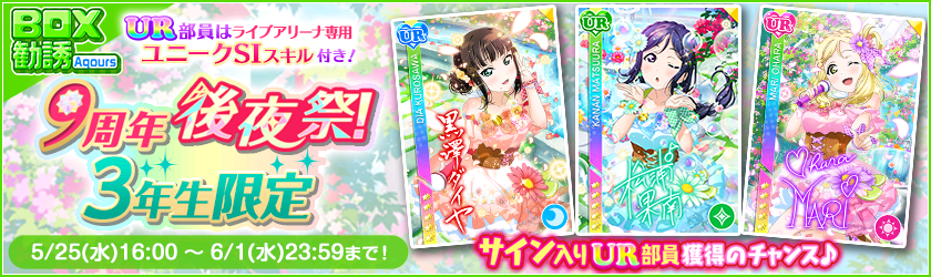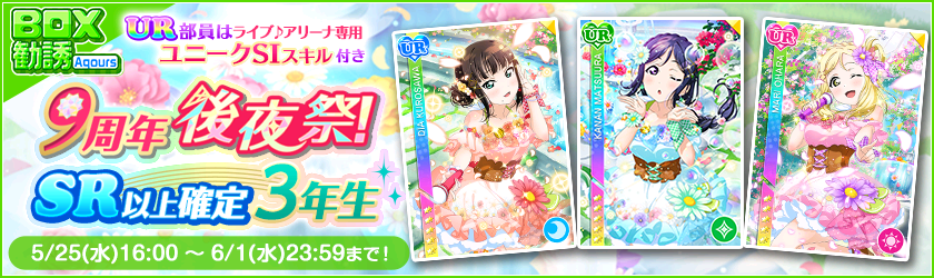 - 9周年後夜祭!SR以上確定BOX勧誘〜Aqours〜3年生