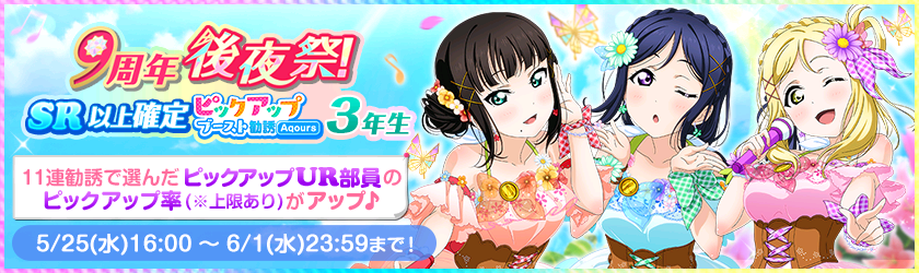 - 9周年後夜祭!SR以上確定ピックアップブースト勧誘〜Aqours〜3年生