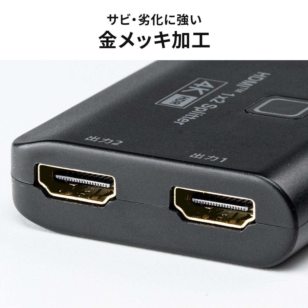 HDMI端子全てに金メッキ加工を採用し、サビに強く信号劣化を防ぎます。