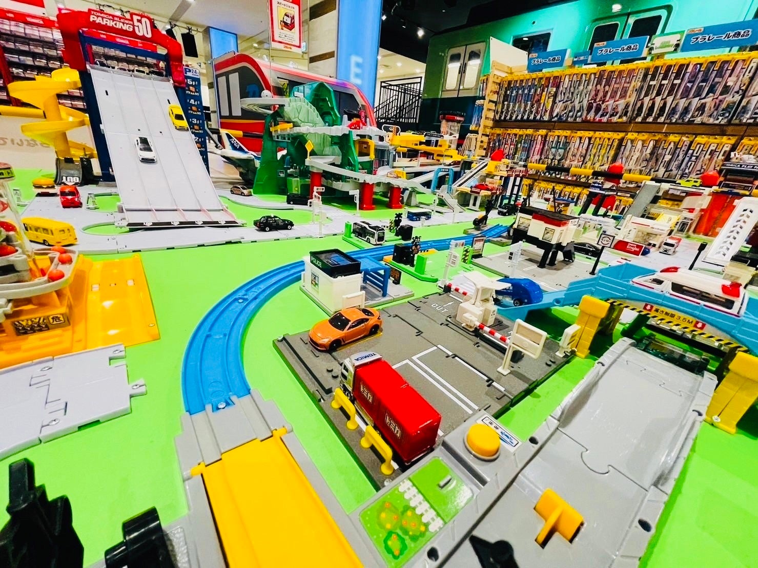 全会場、満員御礼の状態が続いている「ニコニコ!のりものランド」は、フォトスポットやジオラマ展示、クイズラリーやワークショップなどさまざまなコンテンツが盛りだくさんの、家族みんなで楽しめる入場無料のイベントです。「トミカ」「プラレール」のおもちゃはもちろん、「トミカ」や「プラレール」デザインの雑貨もたくさんご用意しております。