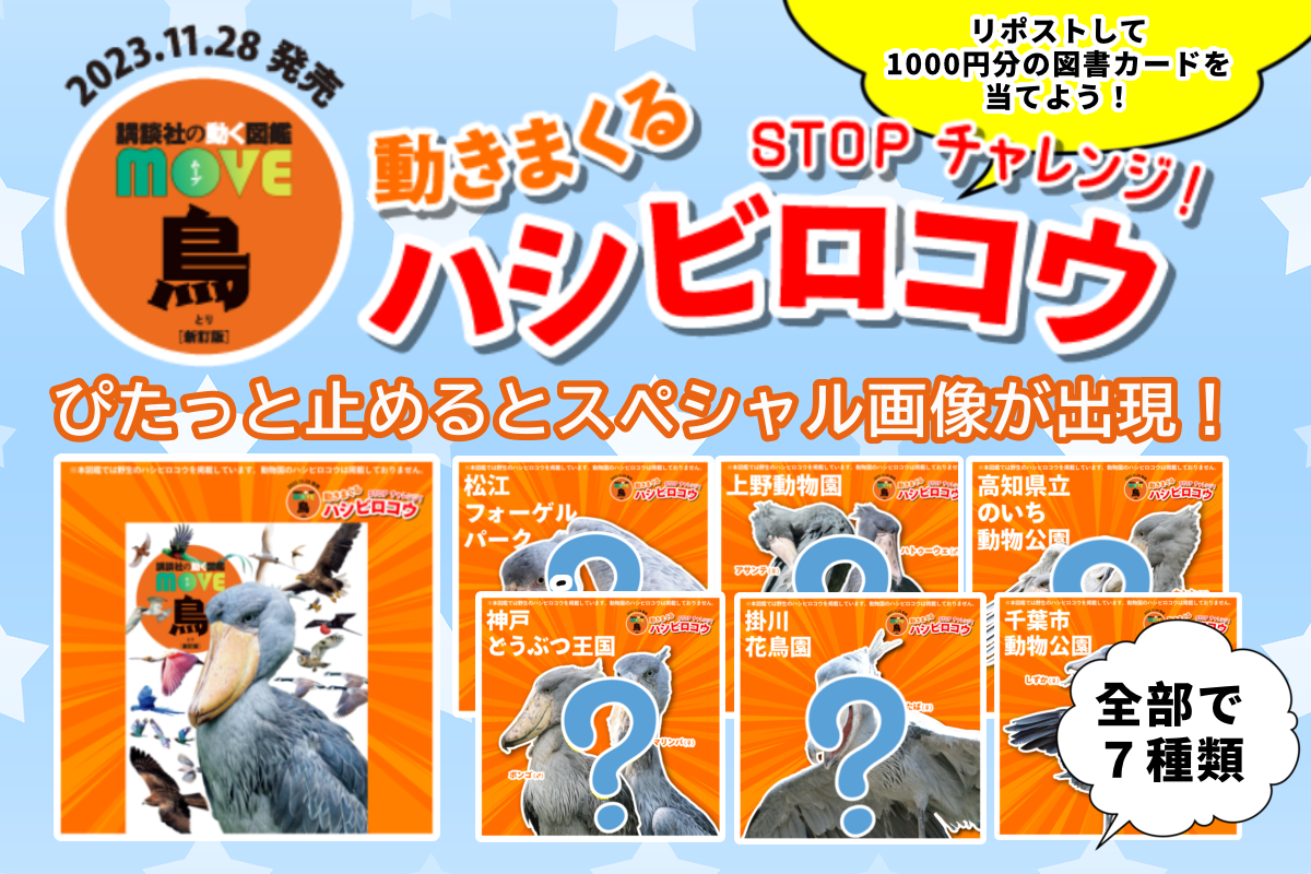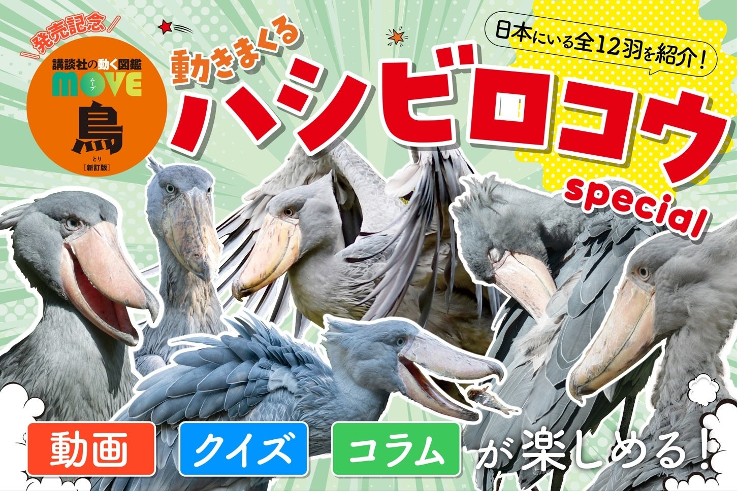 「講談社の動く図鑑MOVE」の新刊発売&累計570万部突破記念! MOVE新刊『鳥 新訂版』の表紙を飾るハシビロコウのクイズや動画が盛りだくさん! 「動きまくるハシビロコウ」の特設イベントが開催中!