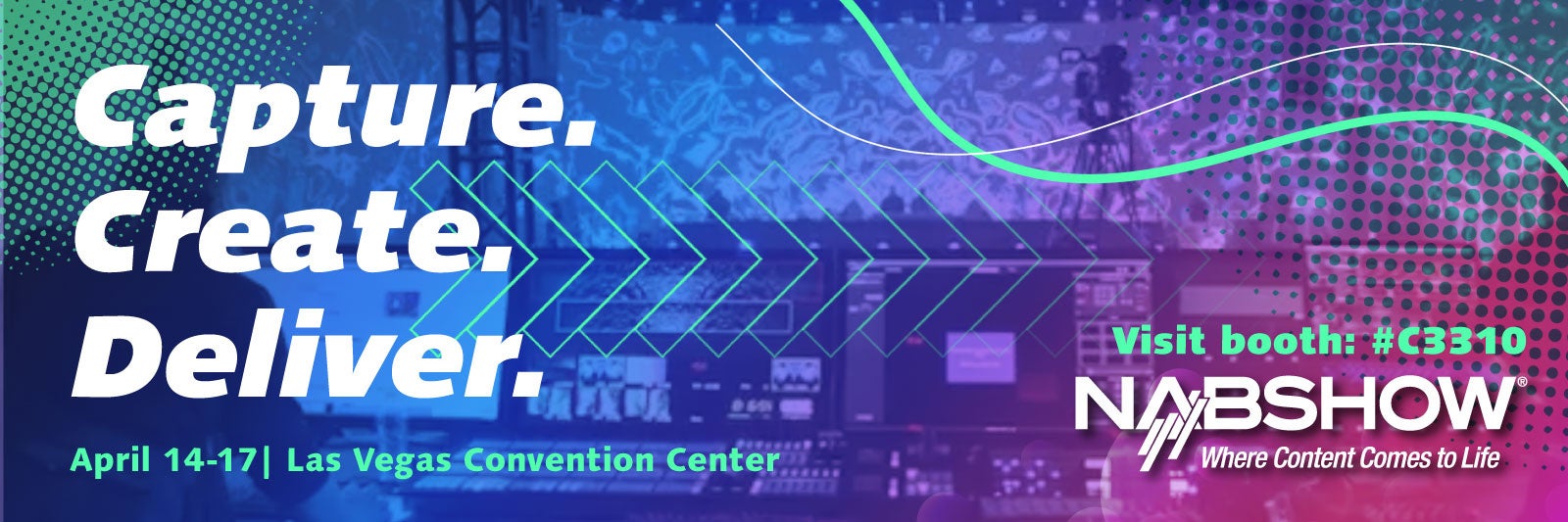 パナソニック コネクトのブース(ラスベガス・コンベンション・センターのセントラルホール、ブース番号C3310)では、「Capture, Create, Deliver」をテーマに、映像制作のワークフローを表現した4つのエリアで、パナソニックの最新の映像技術と新製品ラインアップによるソリューションを紹介します。