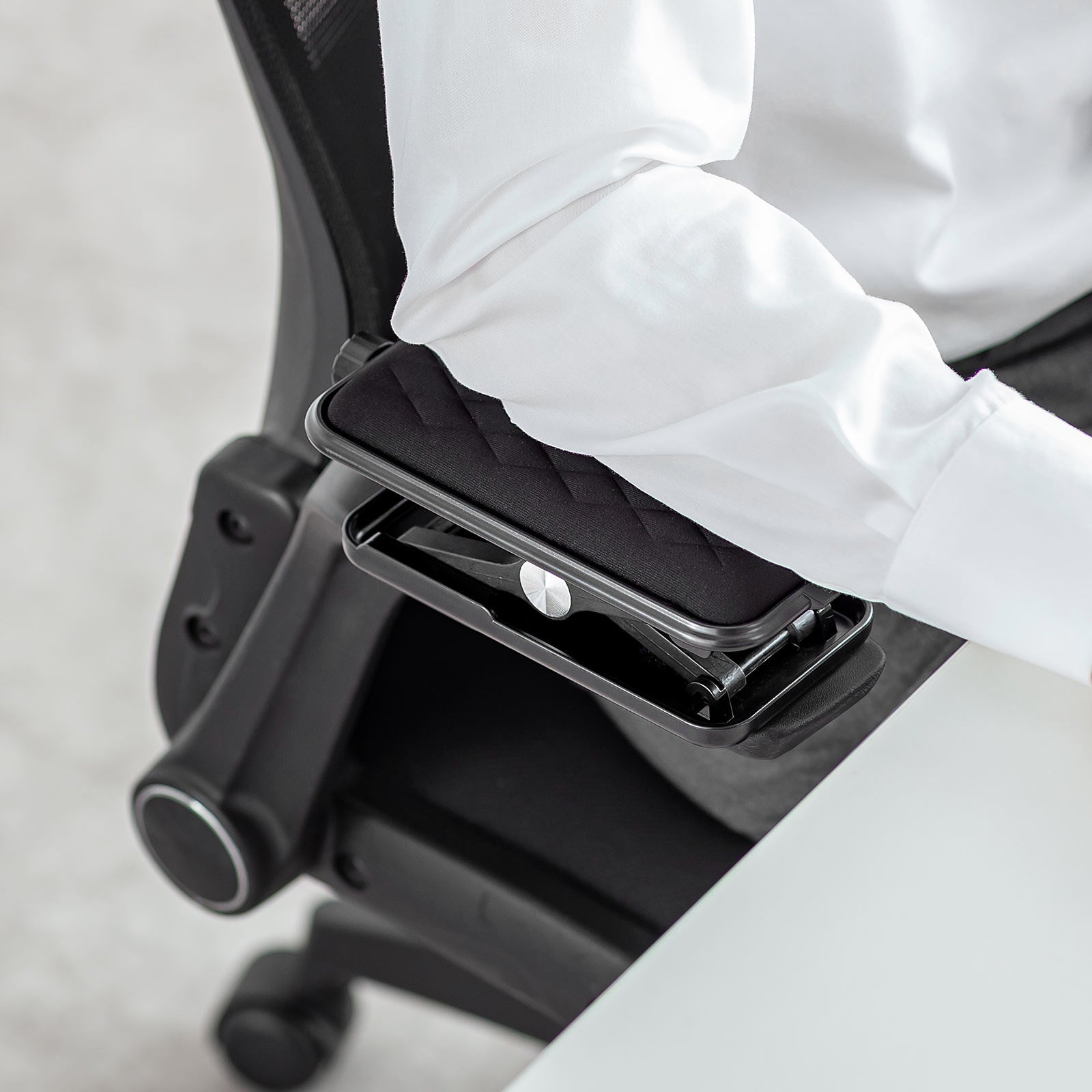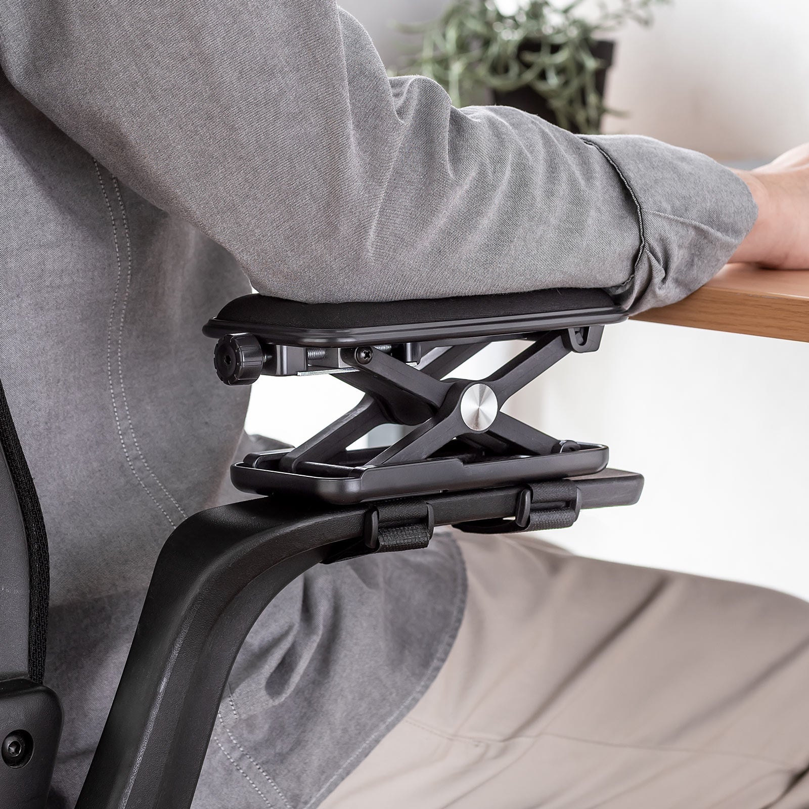 既存の椅子に取り付けるだけで、理想的な高さに調整できるため、ひじ掛けの高さが合わず、肩こりや姿勢の崩れに悩む人にもおすすめです。ノブを回すだけで4.3cm〜11.5cmの無段階調整が可能。体格や作業スタイルに合わせて、最適なポジションを簡単に実現します。