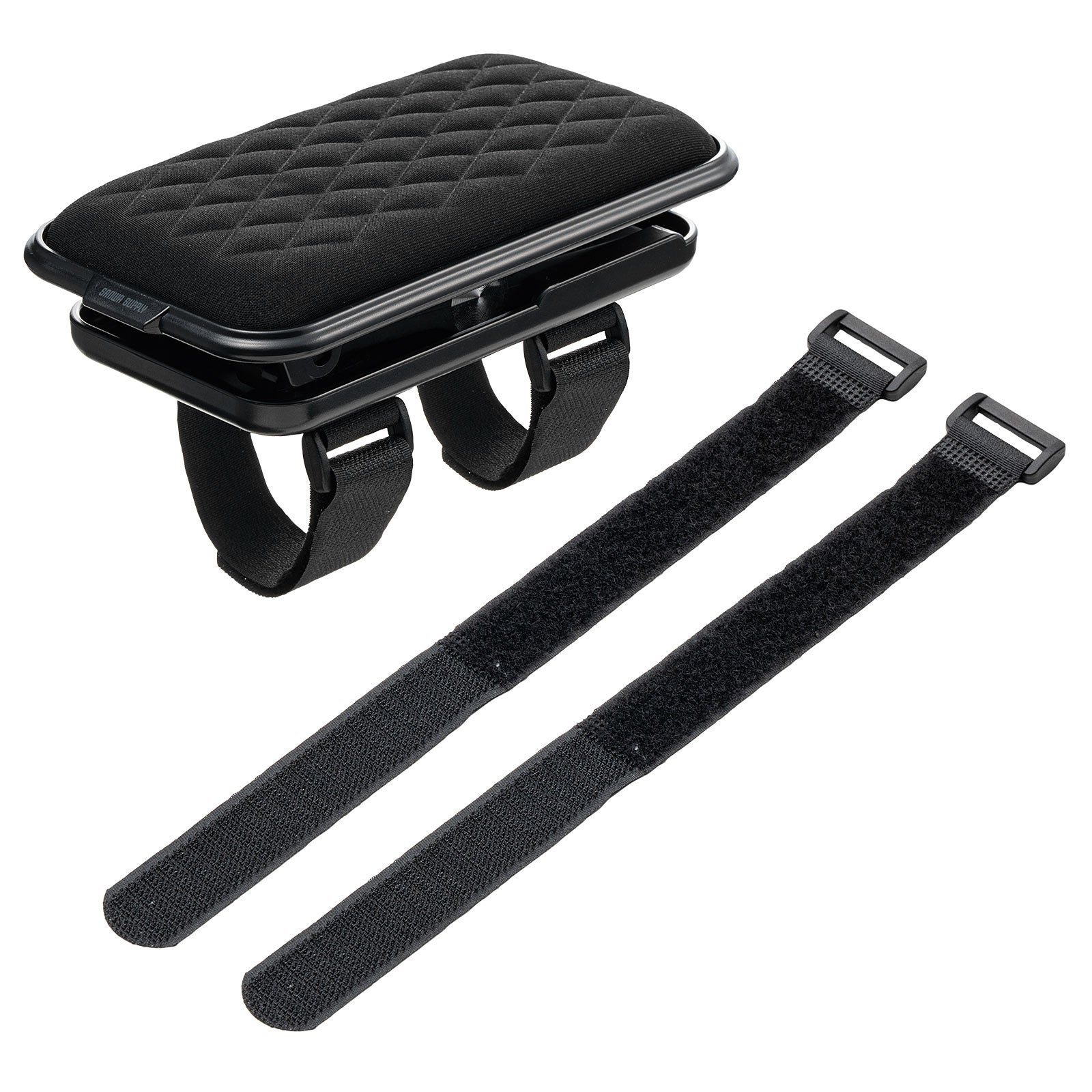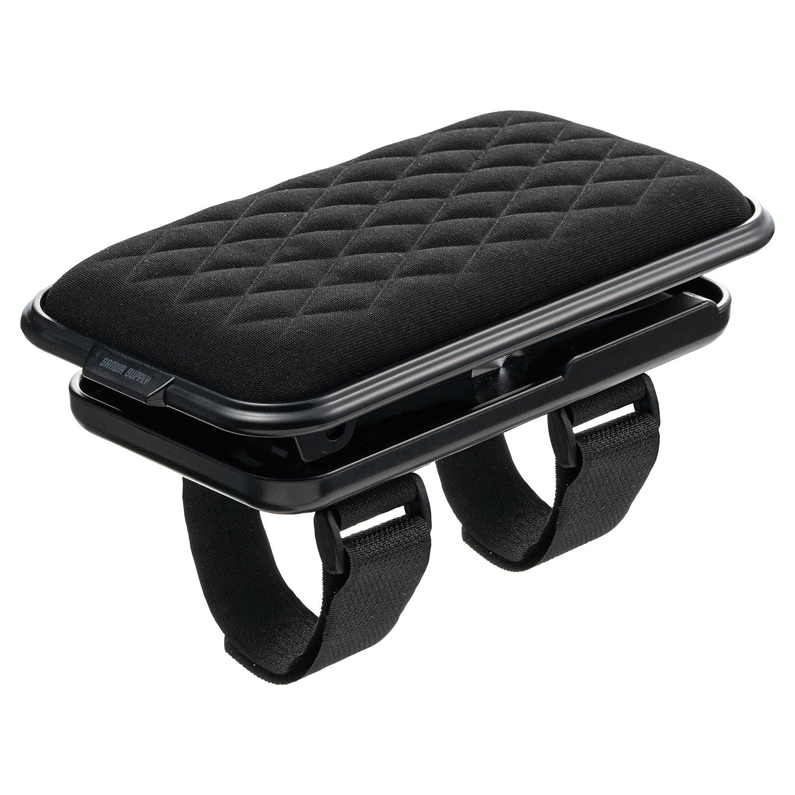 工具不要で、面ファスナーを巻き付けるだけの簡単取り付け。円周38cmまでのひじ掛けに対応し、さらに太いタイプにも使える延長用テープが付属しています。どんな椅子にもフィットしやすく、オフィスチェアやゲーミングチェアなど幅広い用途に対応します。