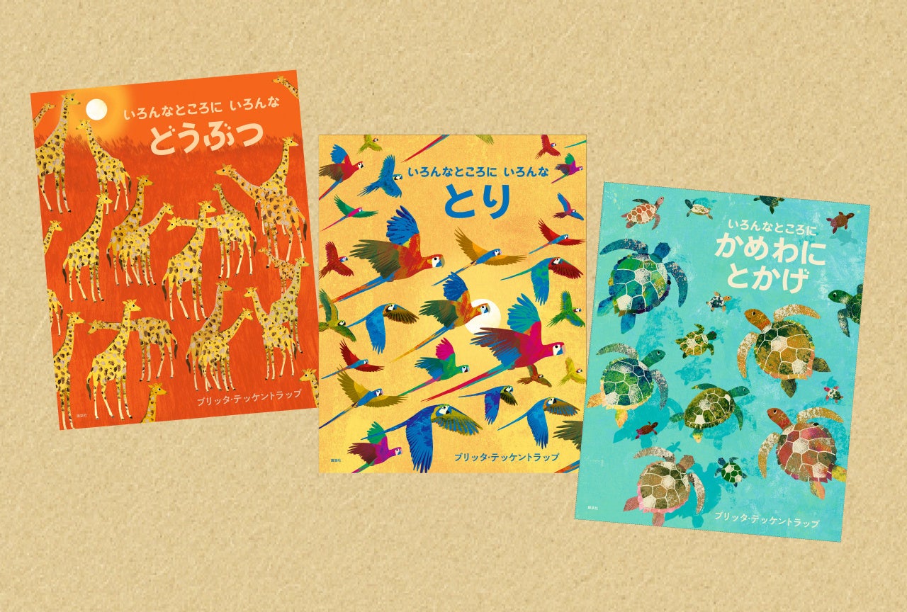 30ヵ国以上で愛されている世界的絵本作家ブリッタ・テッケントラップが、生きものの世界を美しい版画で辿る「There are」シリーズ。日本では2021年11月に株式会社講談社より、翻訳絵本「いろんなところに いろんな」シリーズとして、「さかな」編と「むし」編を刊行。このたび「どうぶつ」編、「とり」編、「かめ わに とかげ」編を11月27日、3冊同時に刊行します。