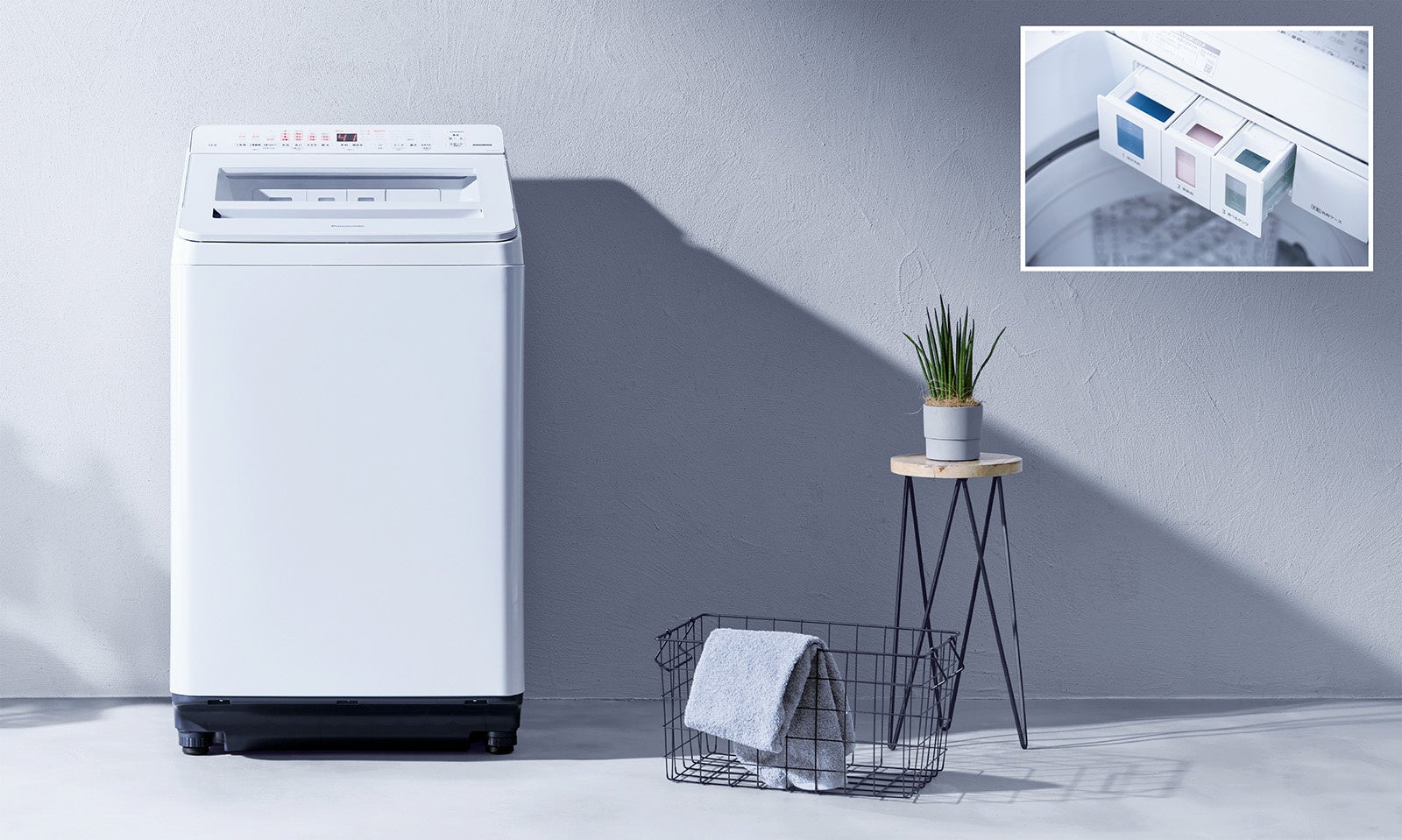 家庭用洗濯機の国内市場は約410万台/年(※2)で、近年はドラム式が徐々にウエイトを拡大していますが、ドラム式以外のタテ型洗濯機は約315万/年(※2)と依然として高いウエイトを占めています。パナソニックのタテ型洗濯機では洗剤自動投入や次亜除菌コースなど高付加価値の機種が好評(※3)です。