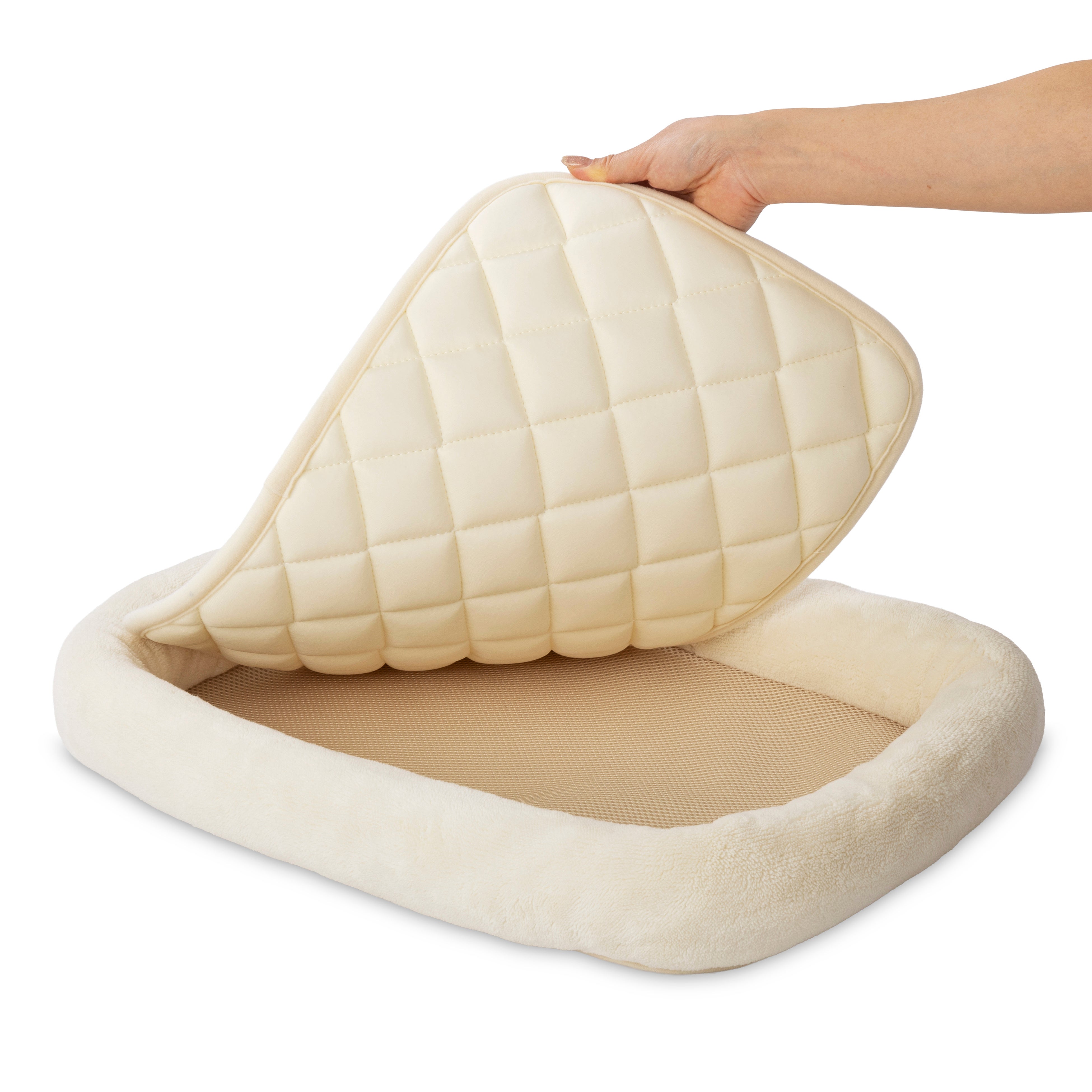 抗菌防臭機能や足元が安定するキルト加工、負担になりにくいあごのせ設計、インテリアになじみやすいシンプルなデザインなど、長年ご好評をいただいているポイントはそのままに、子犬・子猫からシニア犬・猫まで心地よく使える快適設計を継承しました。