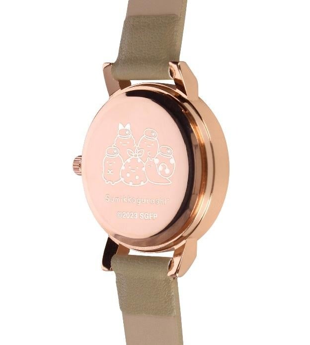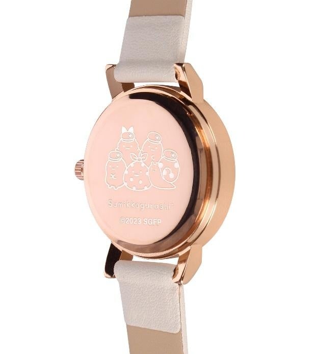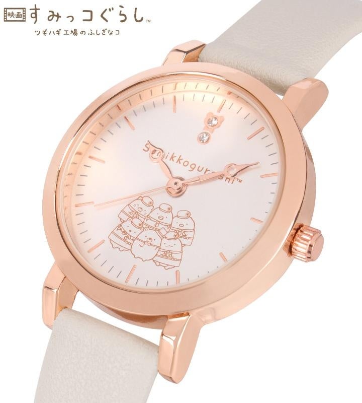 制服姿のしろくま、ぺんぎん?、とんかつ、ねこ、とかげ、くま工場長を盤面にデザインしており、クリアストーンを配置することで高級感のある腕時計となっております。