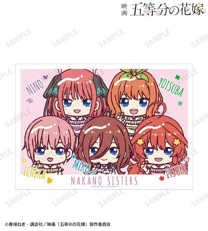 中野一花、中野二乃、中野三玖、中野四葉、中野五月がちょこんと立っているちびキャラを新たに描き起こし、A3サイズのマット加工されたポスターに仕上げました。