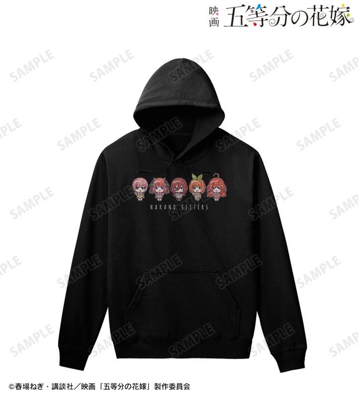中野一花、中野二乃、中野三玖、中野四葉、中野五月がちょこんと立っているちびキャラを新たに描き起こし、パーカーに仕上げました。