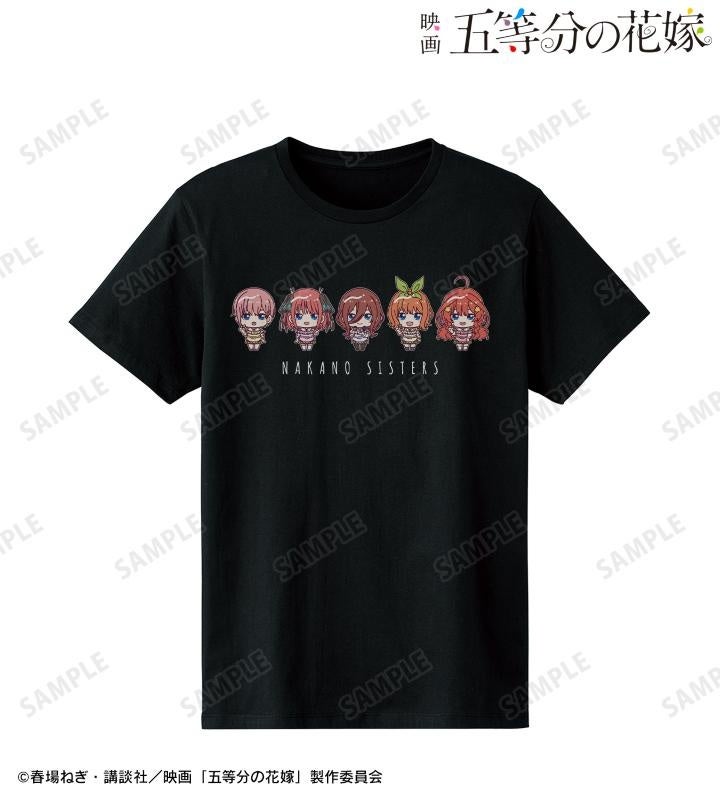 中野一花、中野二乃、中野三玖、中野四葉、中野五月がちょこんと立っているちびキャラを新たに描き起こし、Tシャツに仕上げました。
